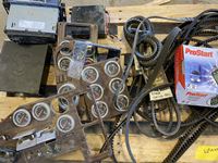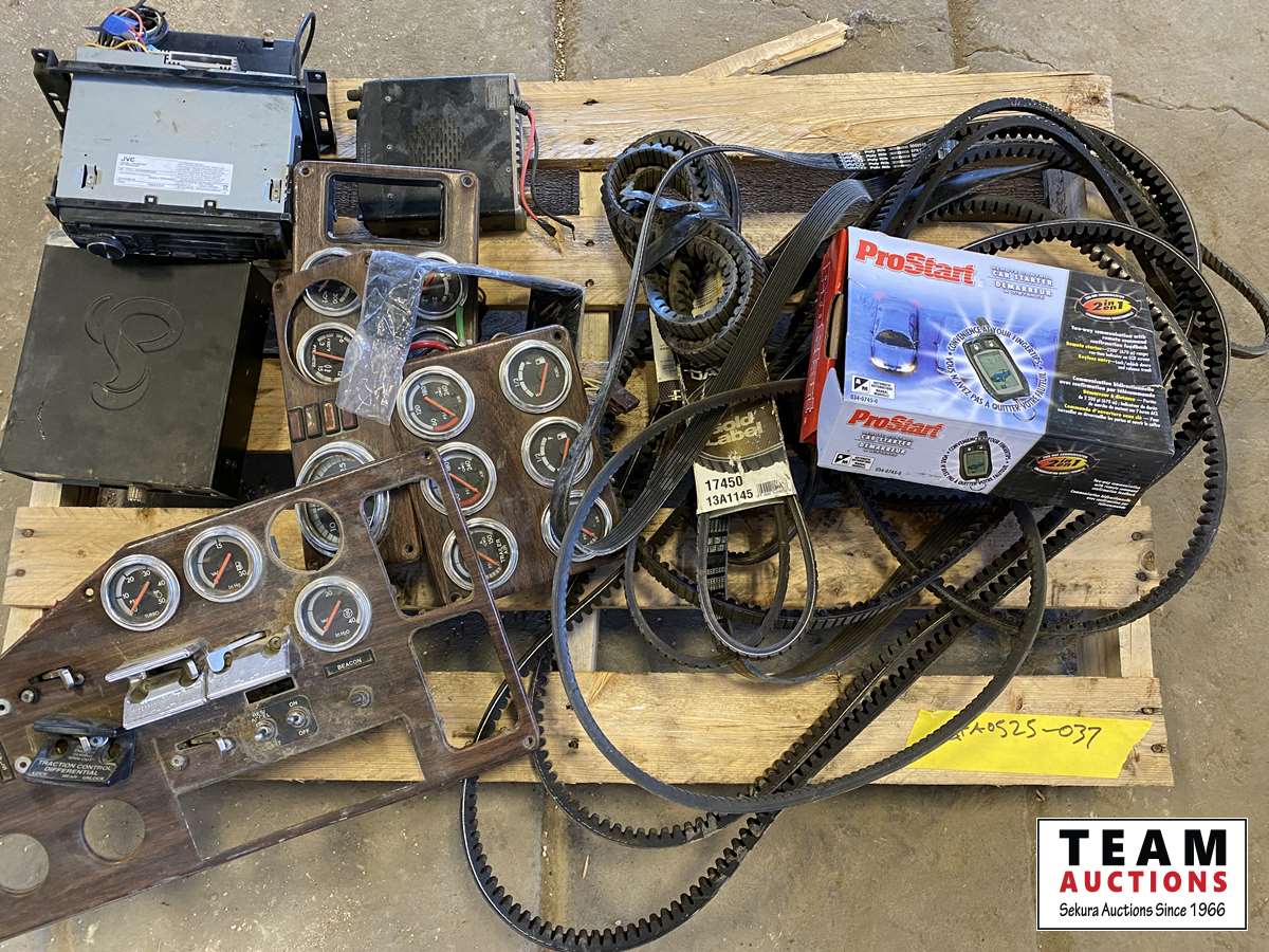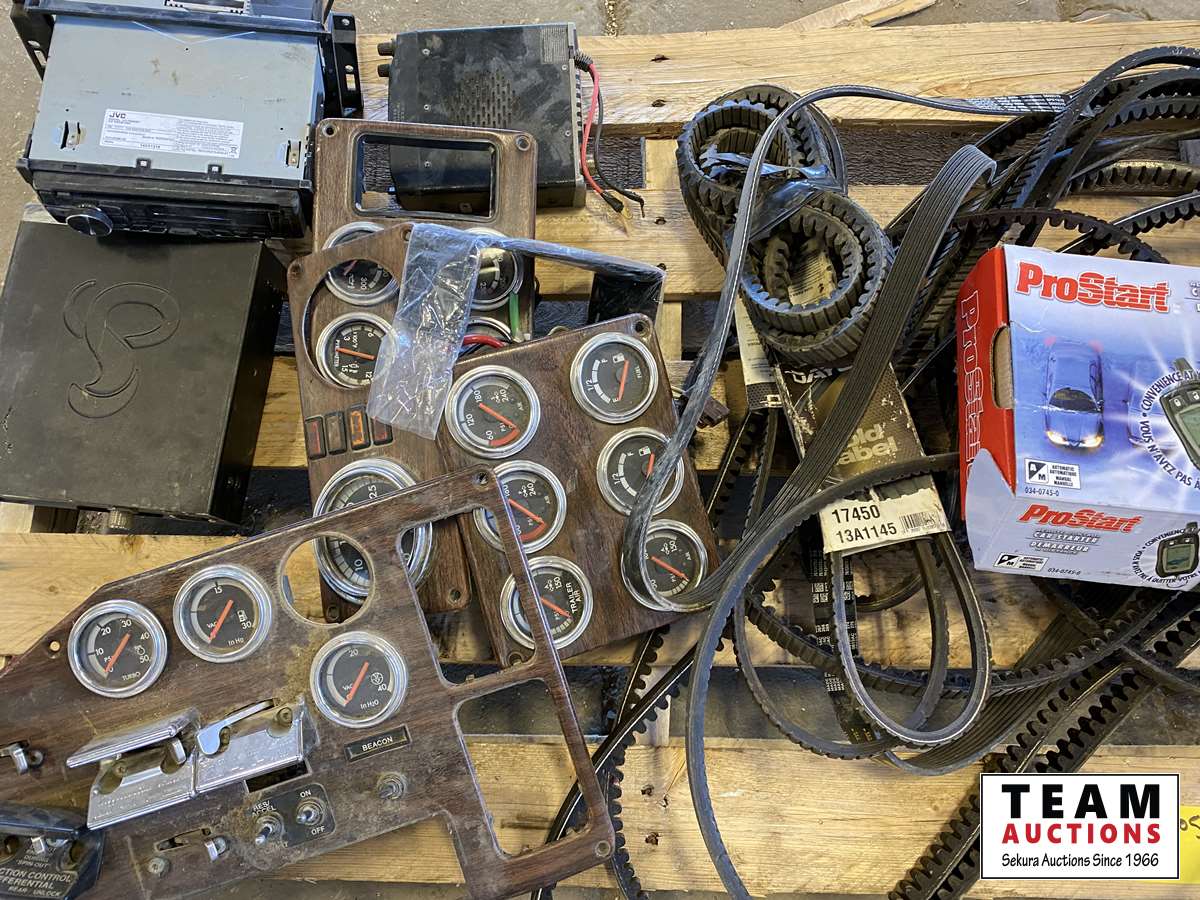 Pro Start car starter, radios, assortment of truck belts, dash assembly gauges, radios, etc.