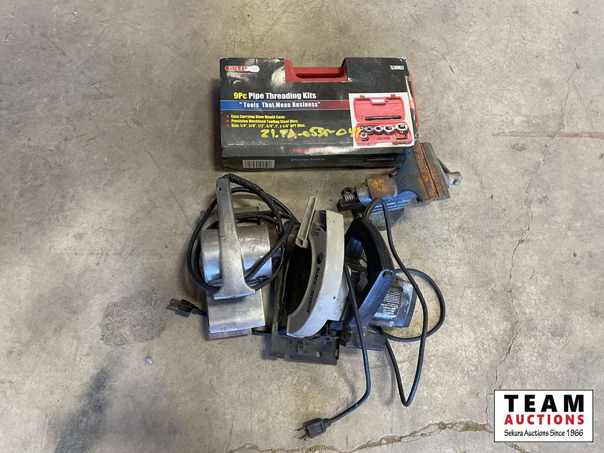 90 Pc Pipe Threading Kits, Black & Decker Saw, Older Vice, Belt Sander