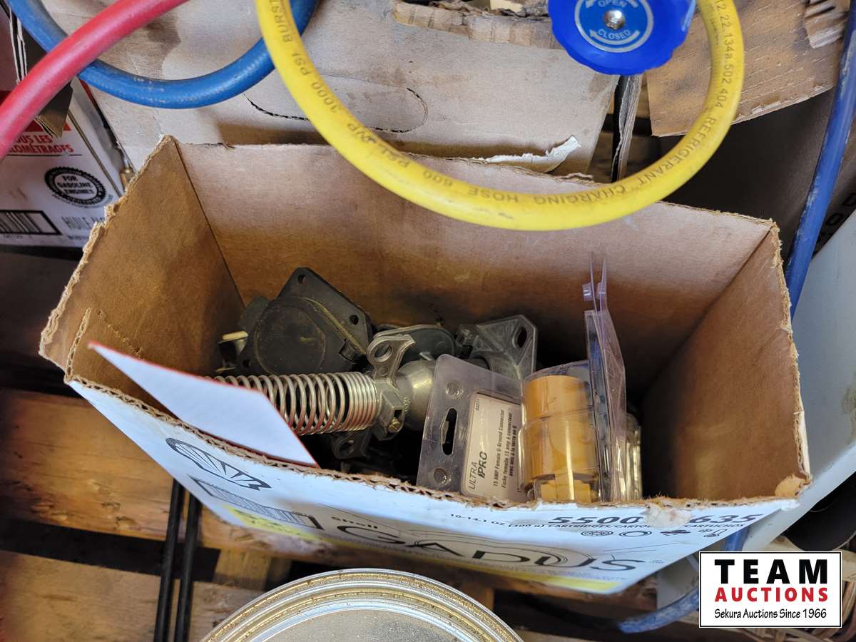 refrigerant pressure gauges, misc. lights, wire rack, semi connector ends, air brake (Kleen Flo)