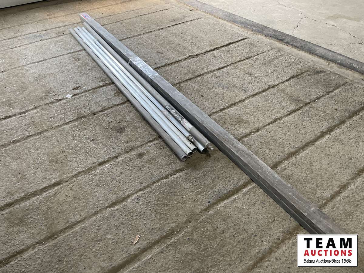 1453 10 Ft Magnesium Screeds & Assortment of Screed Handle Extensions
