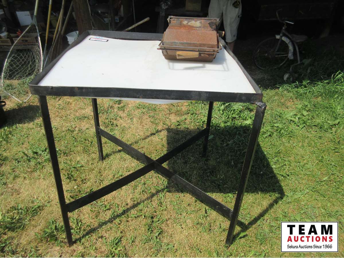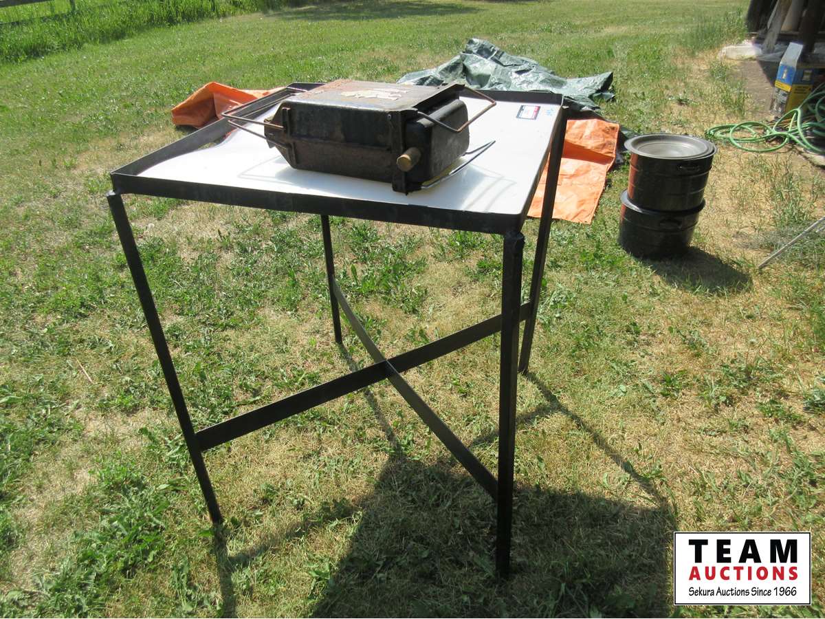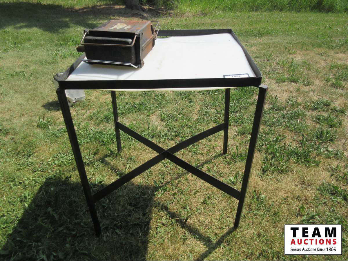 1882 30 Inch X 30 Inch Poly Top Meat Cutting Table & Portable Hibachi