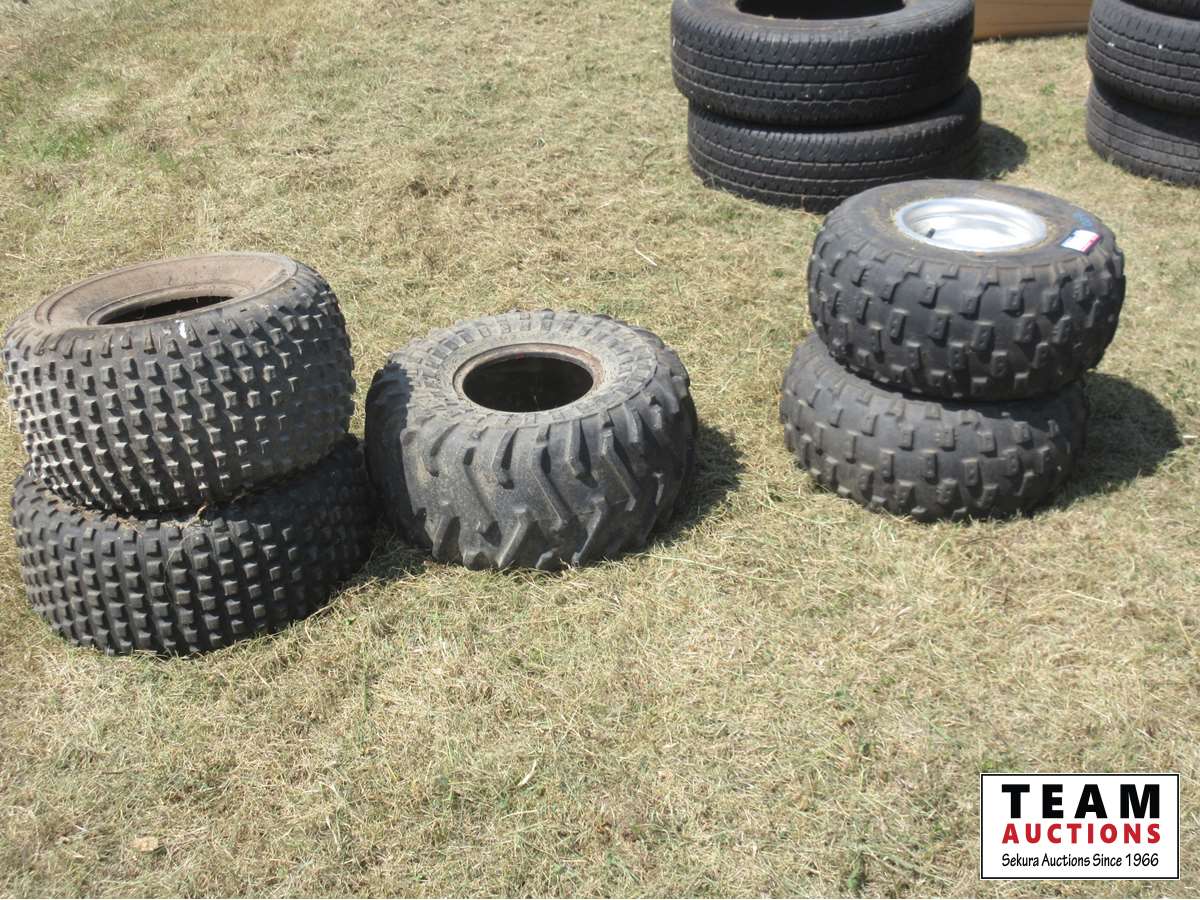 (2) 22 x 10-9 with rims, (3) 25 x 12.00-9
