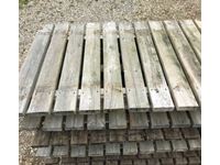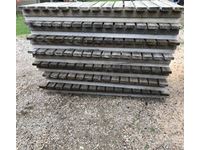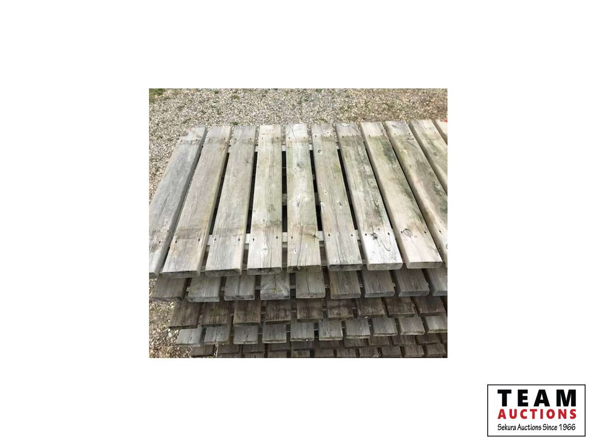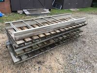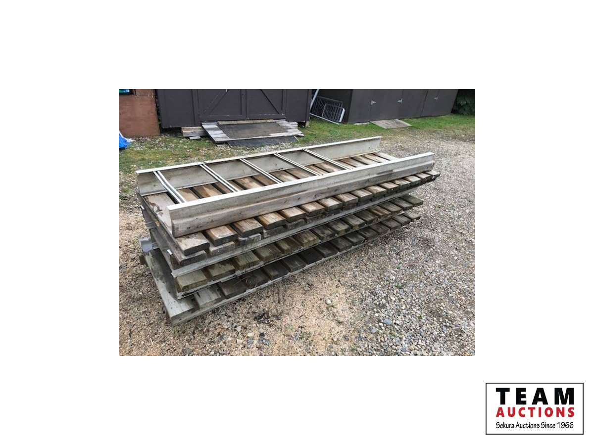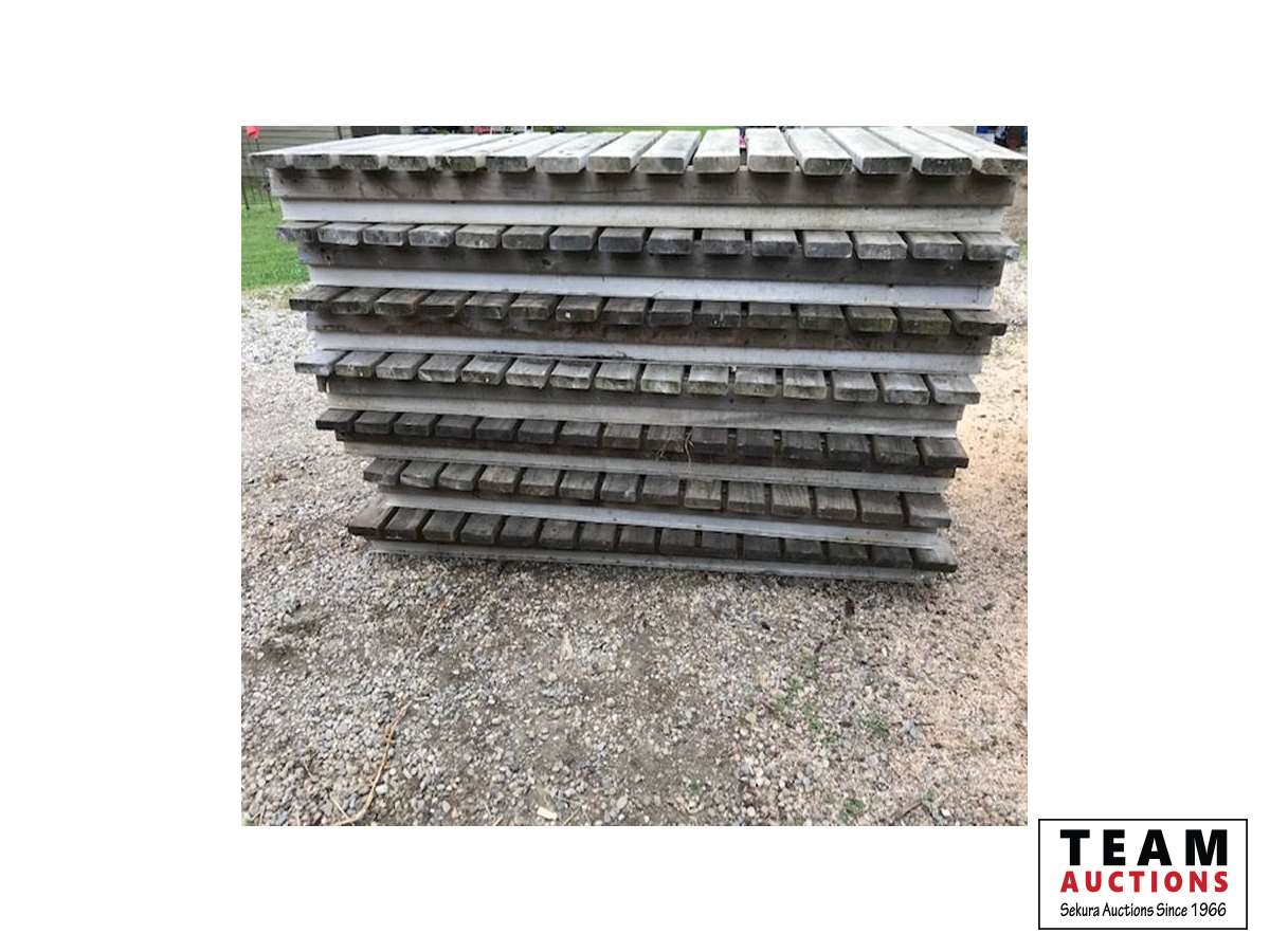 (1) 13 Ft & (1) 12 Ft long dock section by 36 In. Wide of 2 x 6, (7) 8 Ft long dock sections by 36 In. Wide of 2 x 6, (3) 2 Ft long dock sections by 36 In. Wide of 2 x 6, (4) 20 Ft long sections of aluminum cable tray, (15) 24" wide by 48" high dock stands with (18) 3 Ft height adjustable poles, (6) 50 gallon blue plastic drums