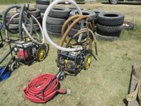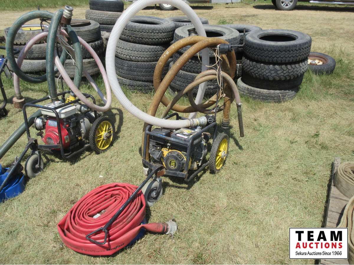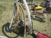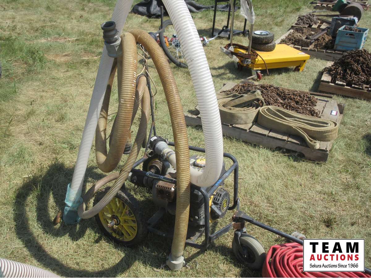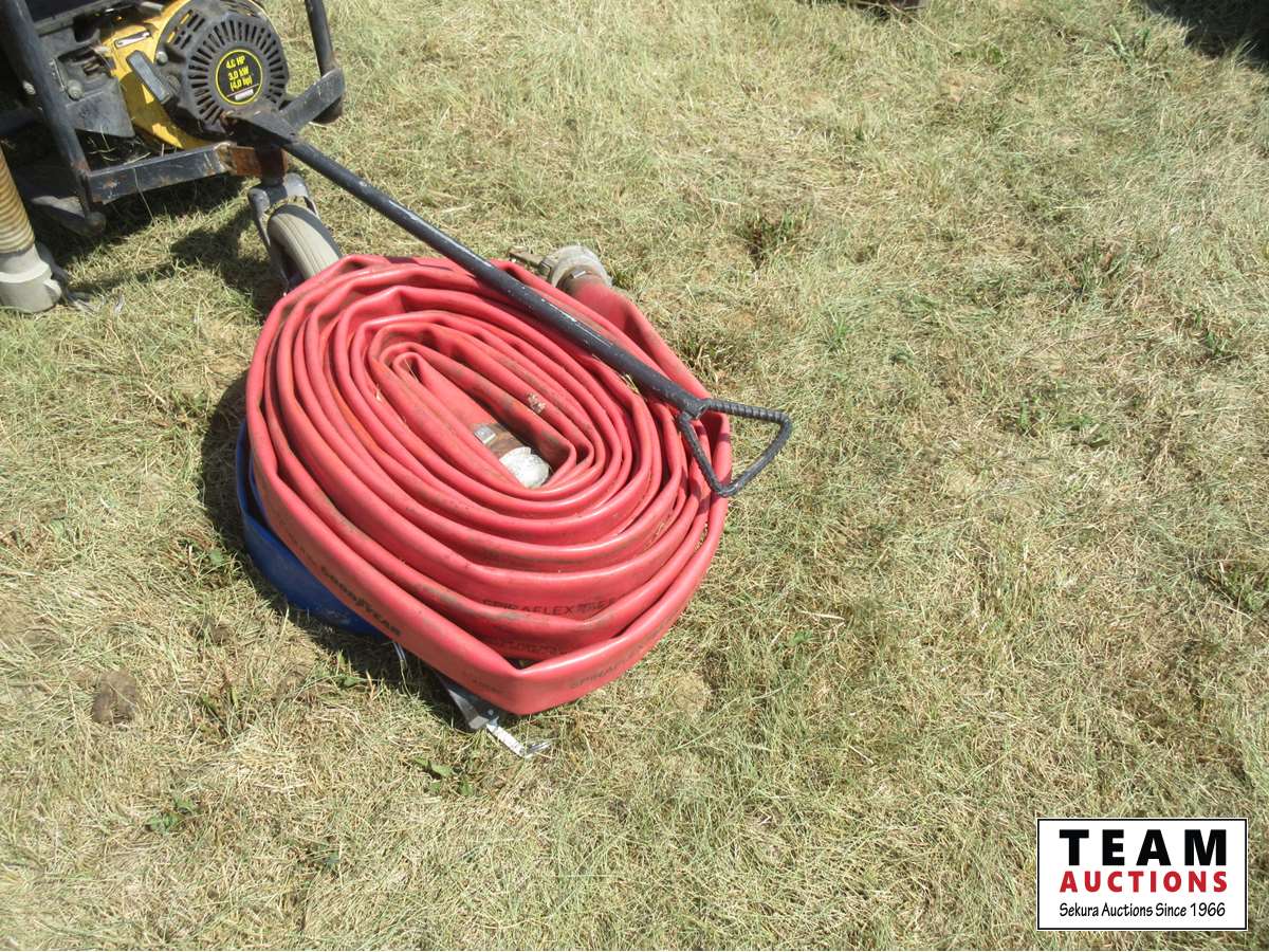 4 HP engine, (2) lay flat discharge hoses, suction hose