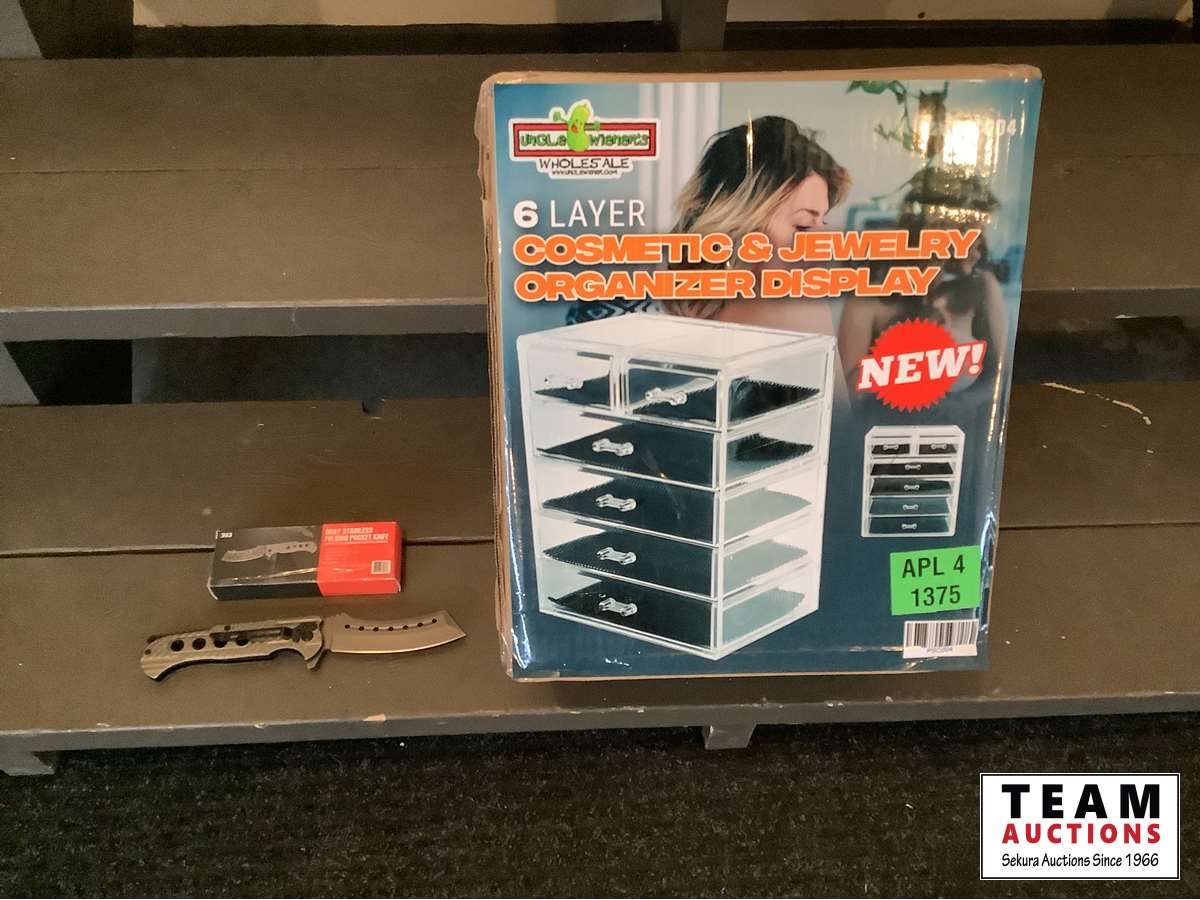 1606 Jewelry Organizer and Stainless Folding Knife (Unused)