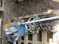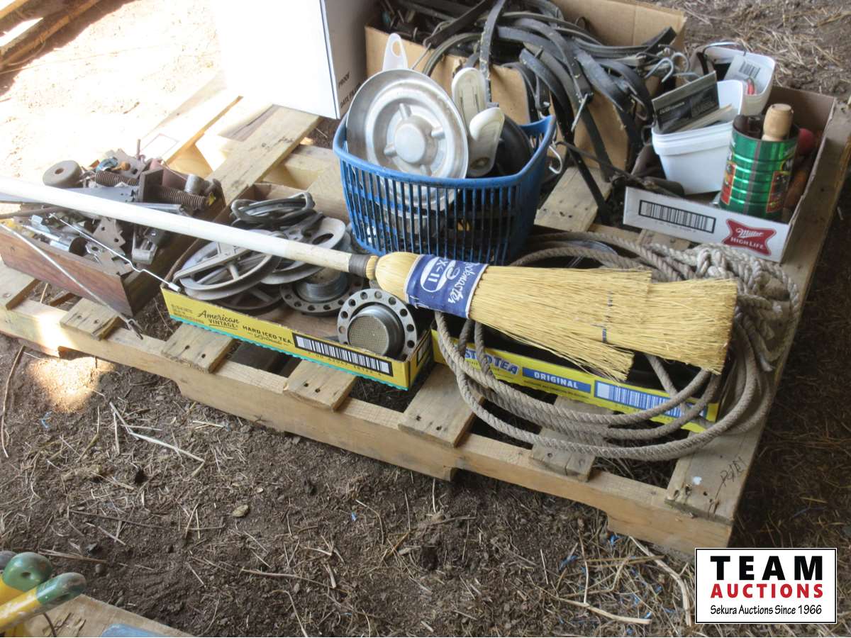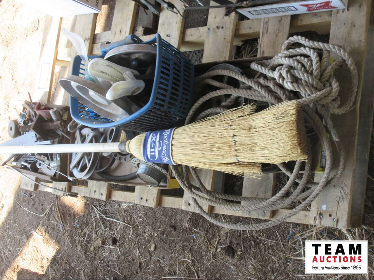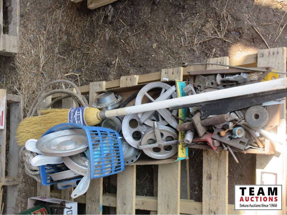 Curling broom, pulleys, ash trays, fuel tank lids, rope