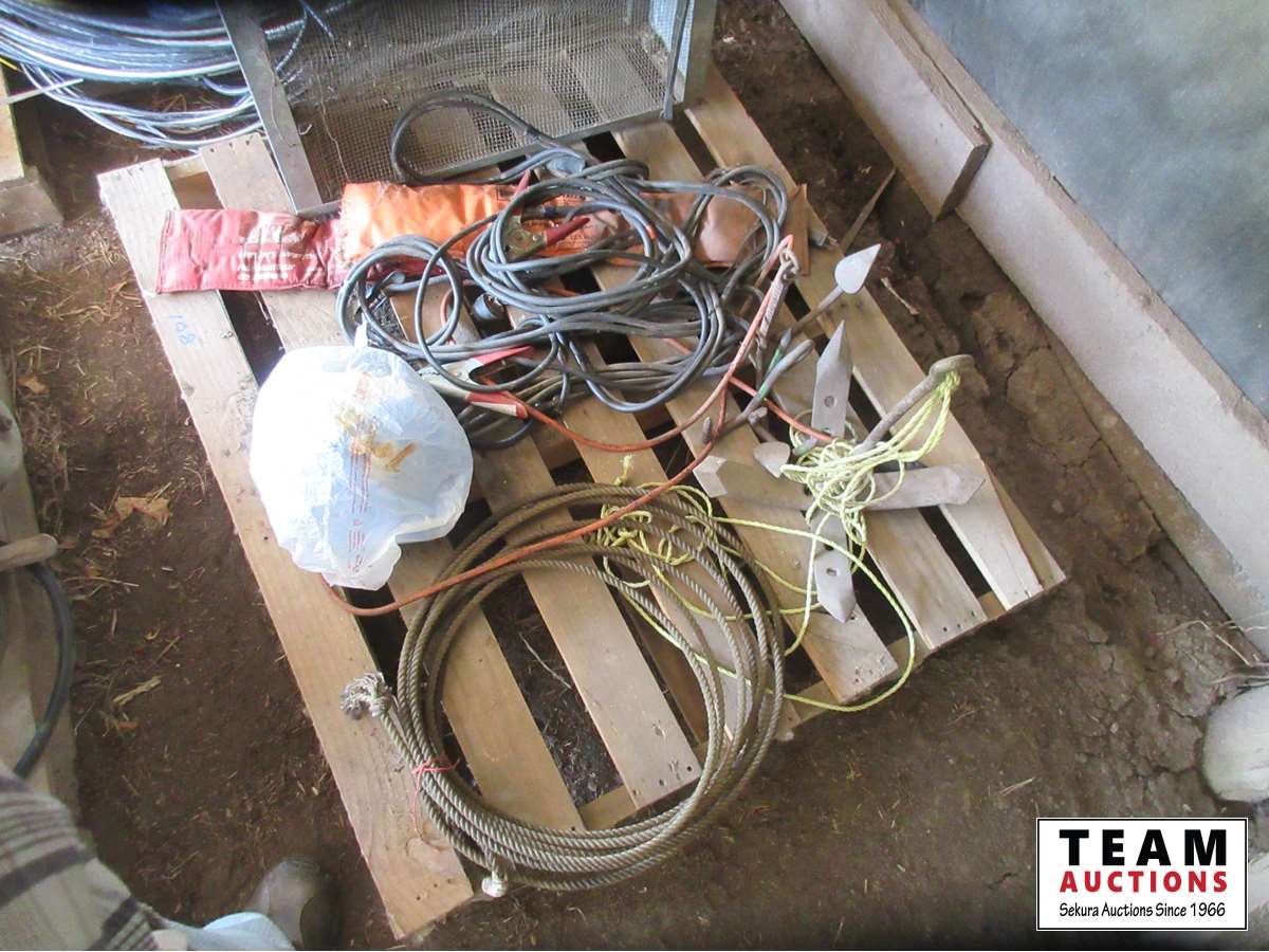 Booster cables, battery warmers, galvanized cage, anchors, length of rope, anchor, miscellaneous