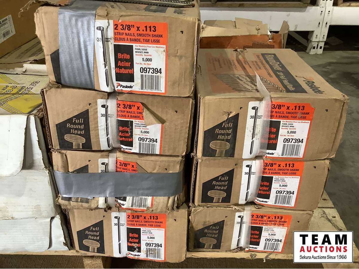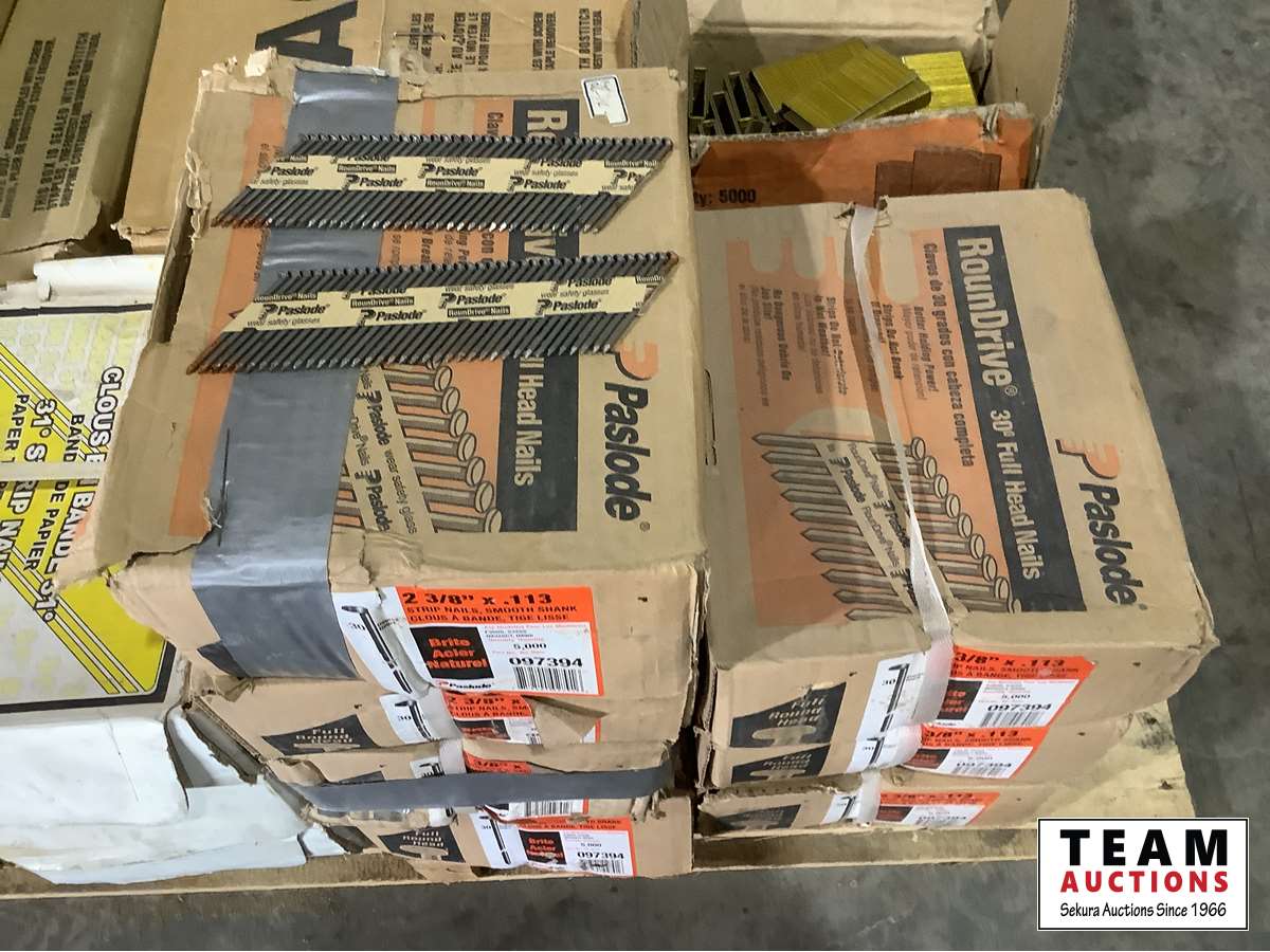 2130 Pallet of New Various Sized Air Nailer Nails & Staples