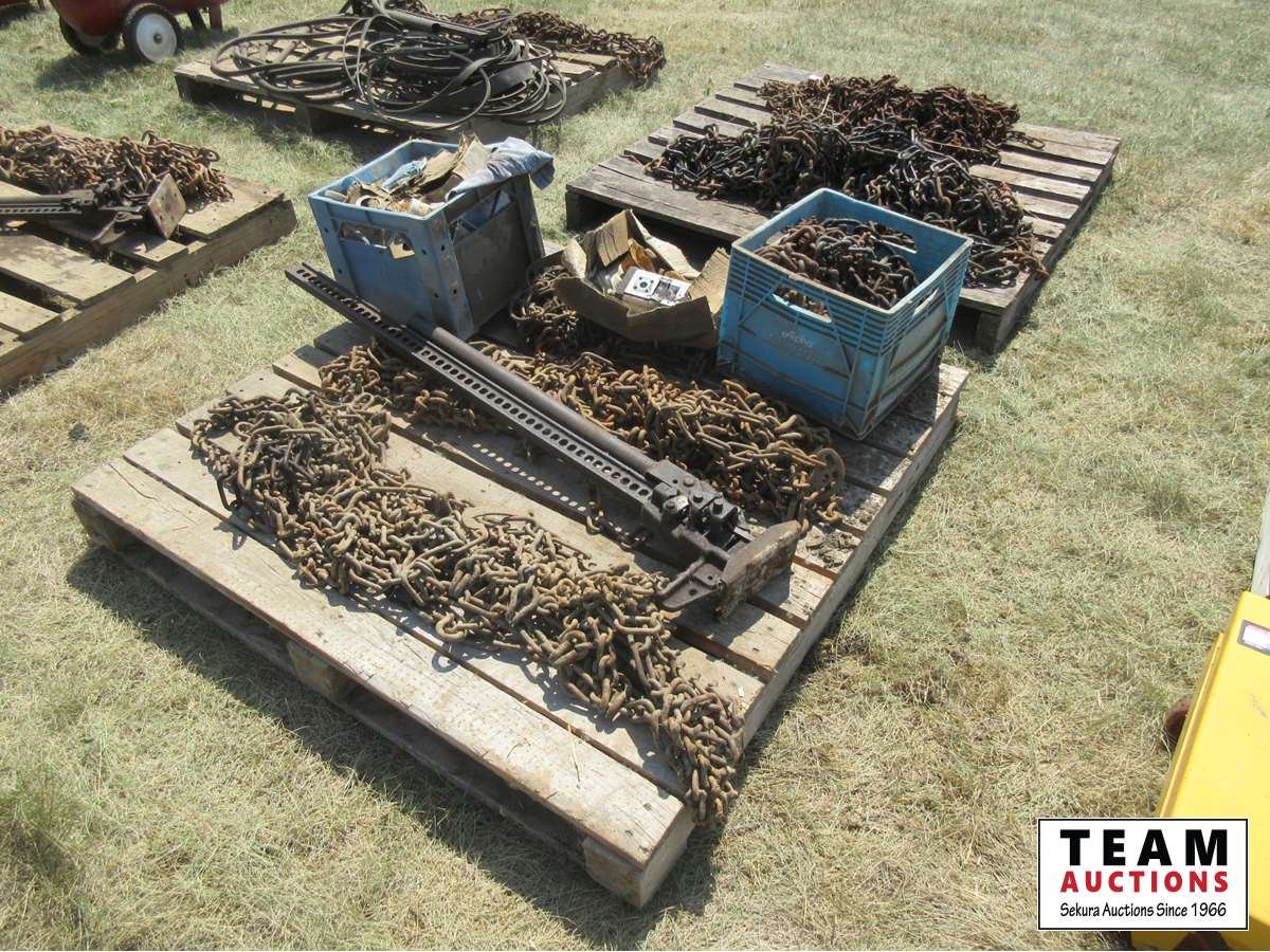 Tire chains, hydraulic motor, nylon bushings, seals, springs, farm jack, miscellaneous parts