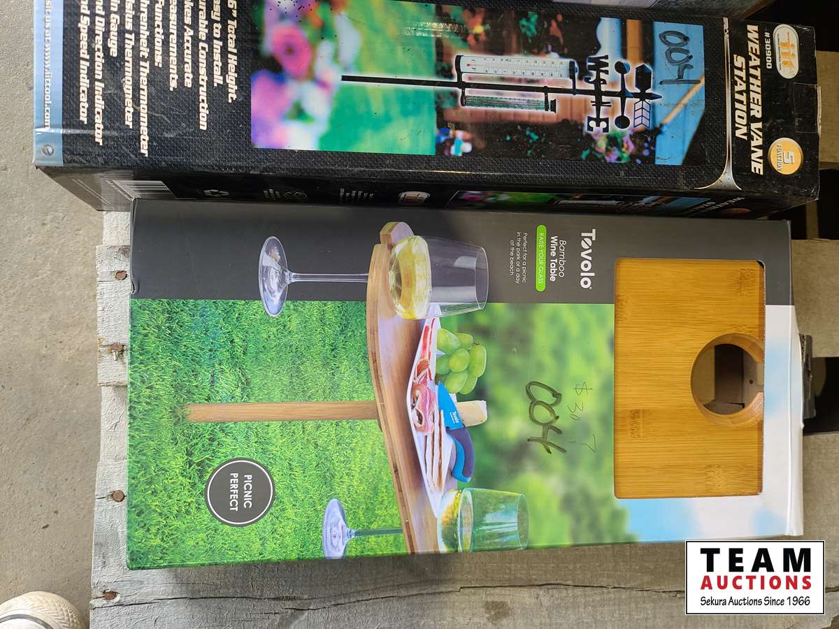 1764 Pooch Power, Bug Zapper, Weather Vane, Bamboo Wine Table