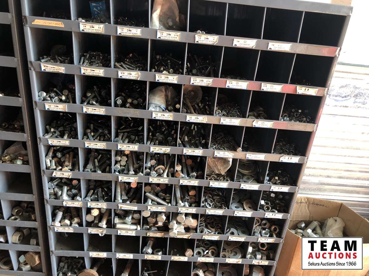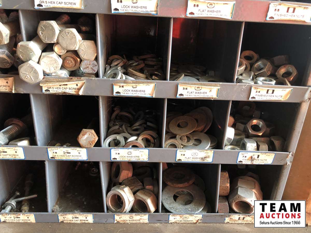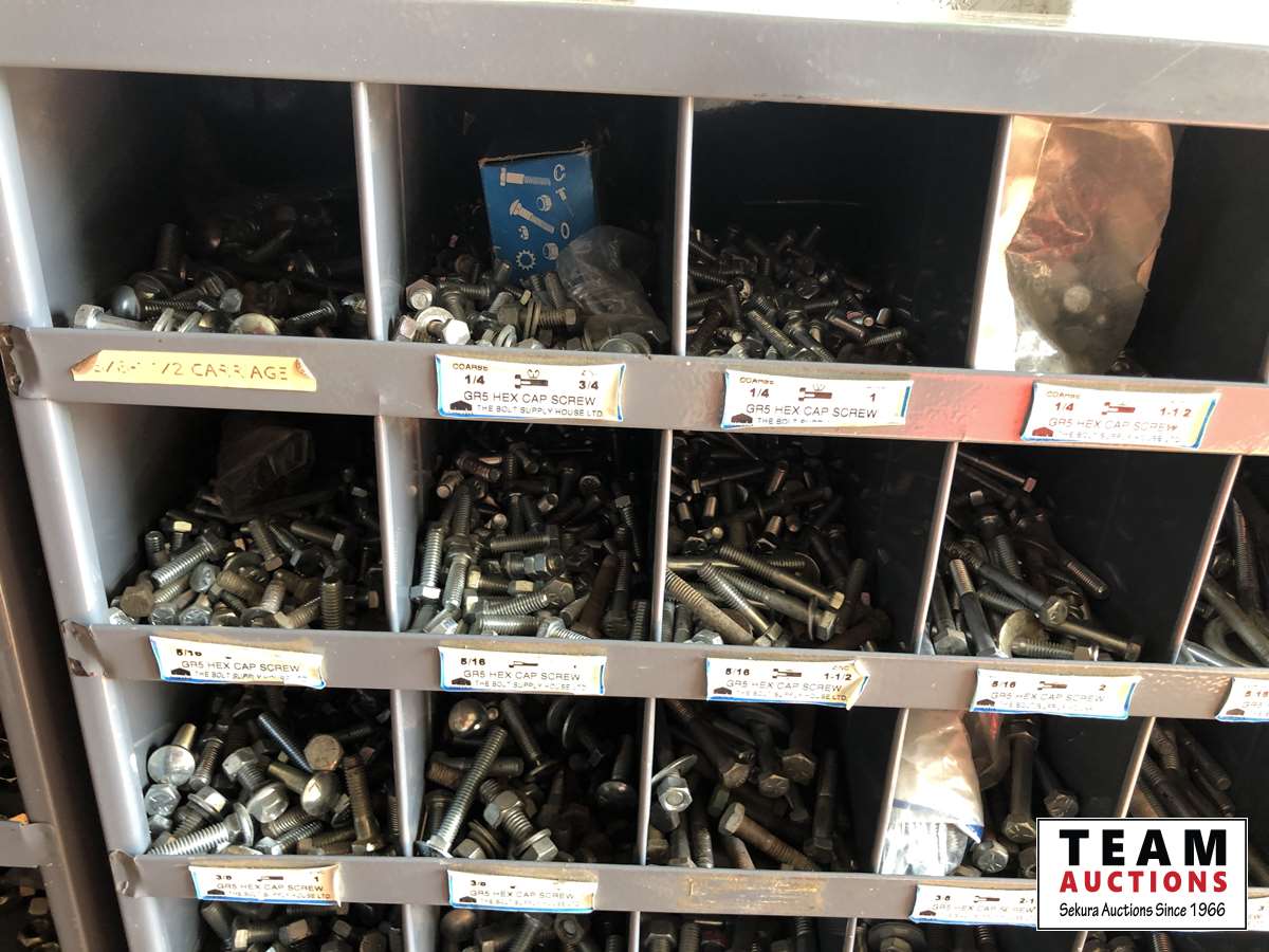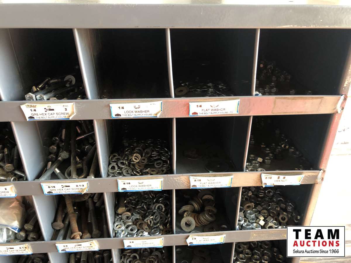 1856 72 Compartment Bolt Bin with Grade 5 Bolts, Nuts & Washers