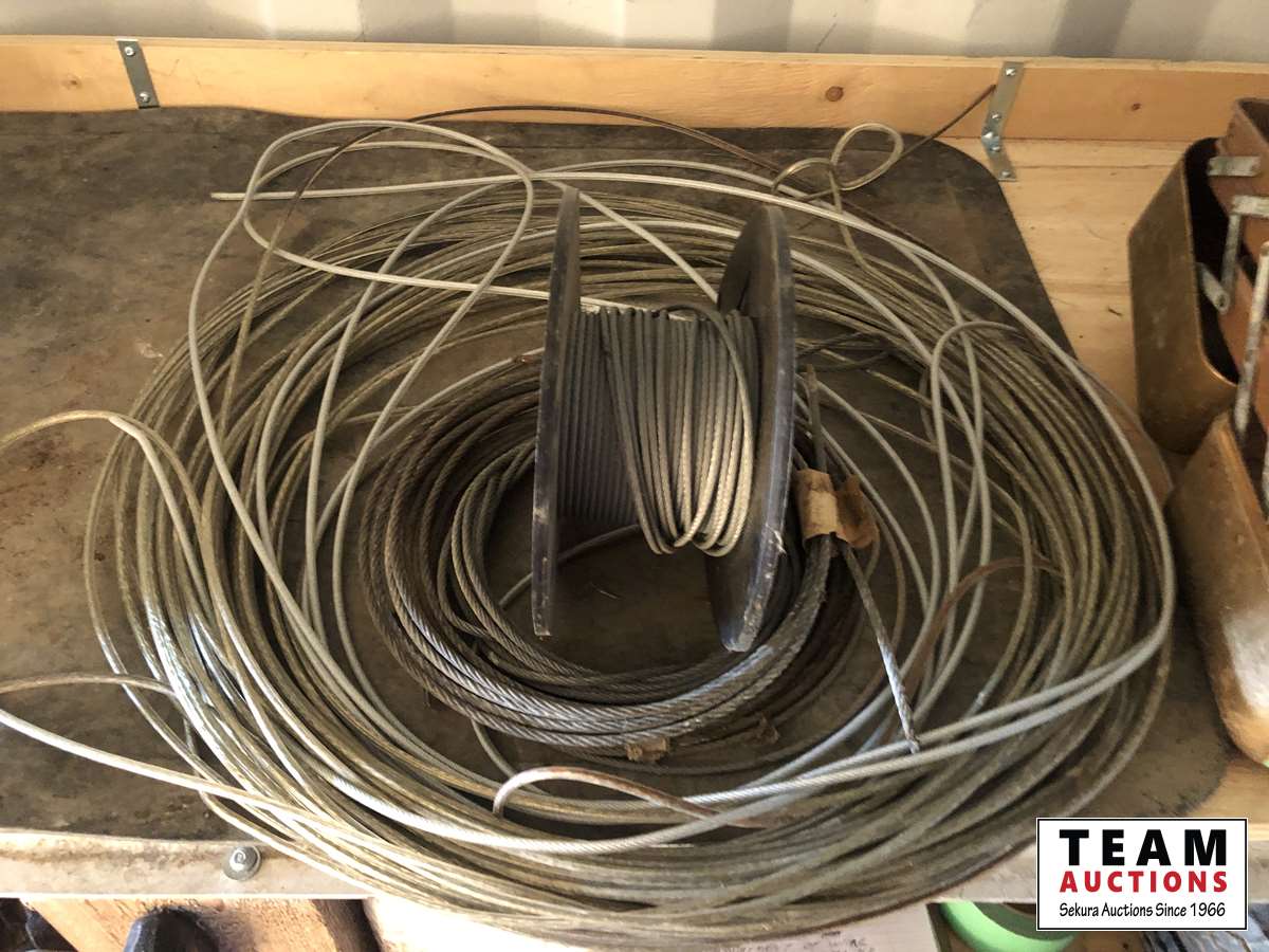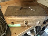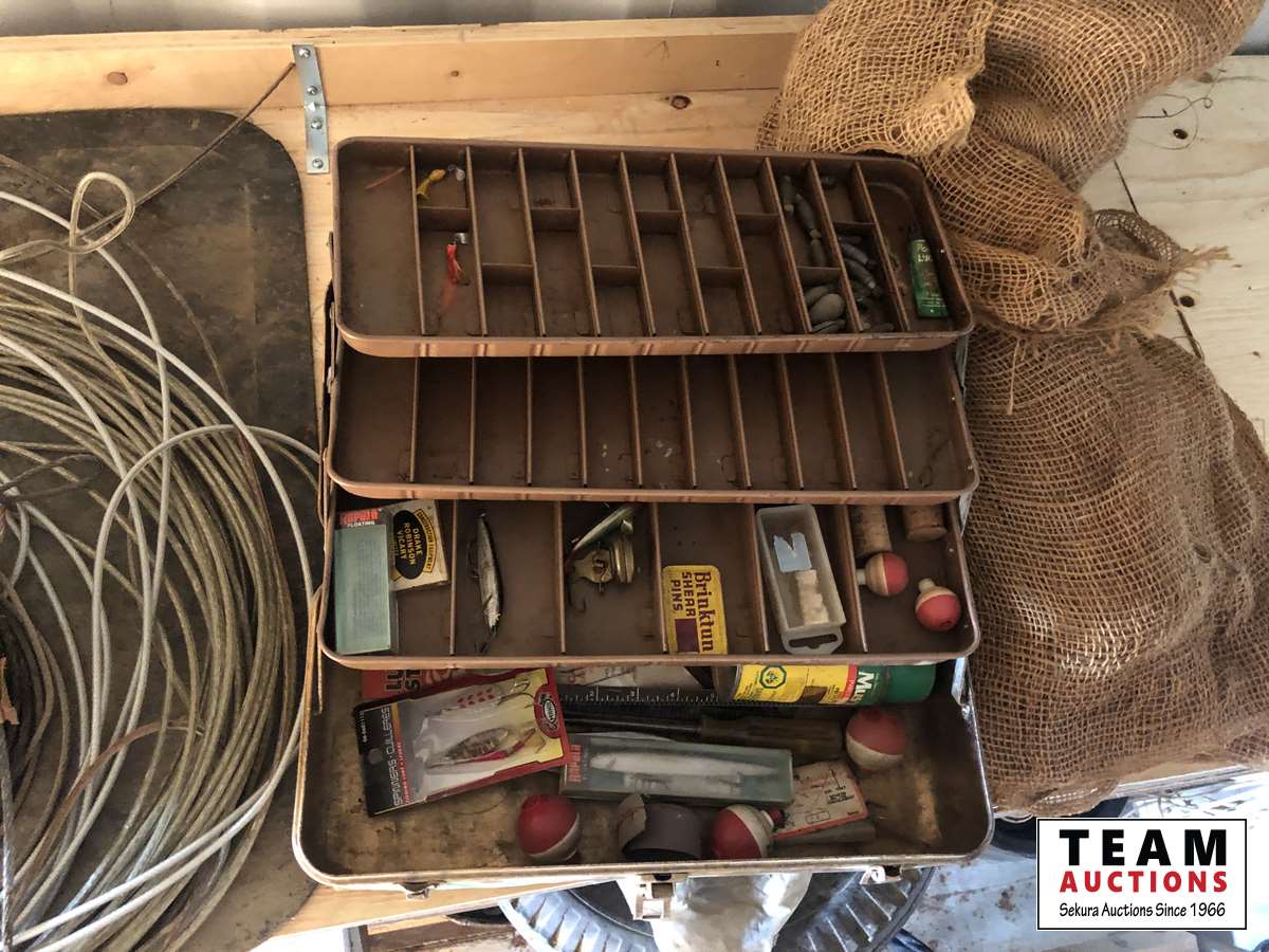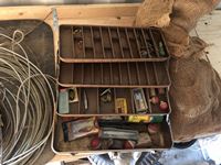 Small cable, cloth line cable, tackle box with tackle, gunny sack roll