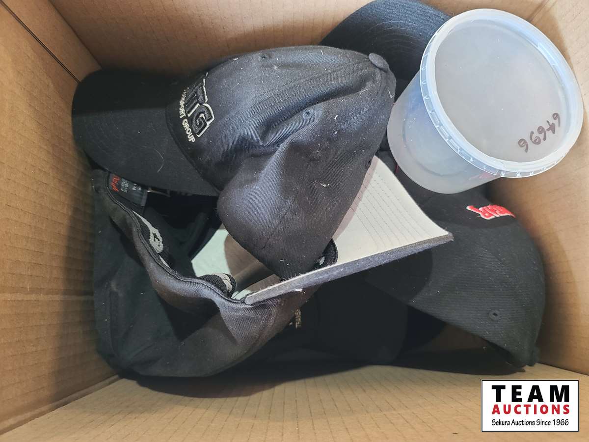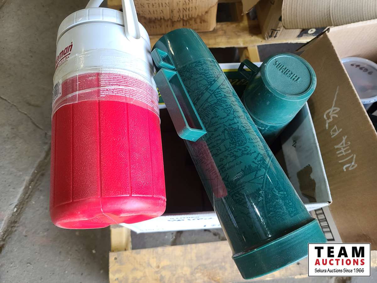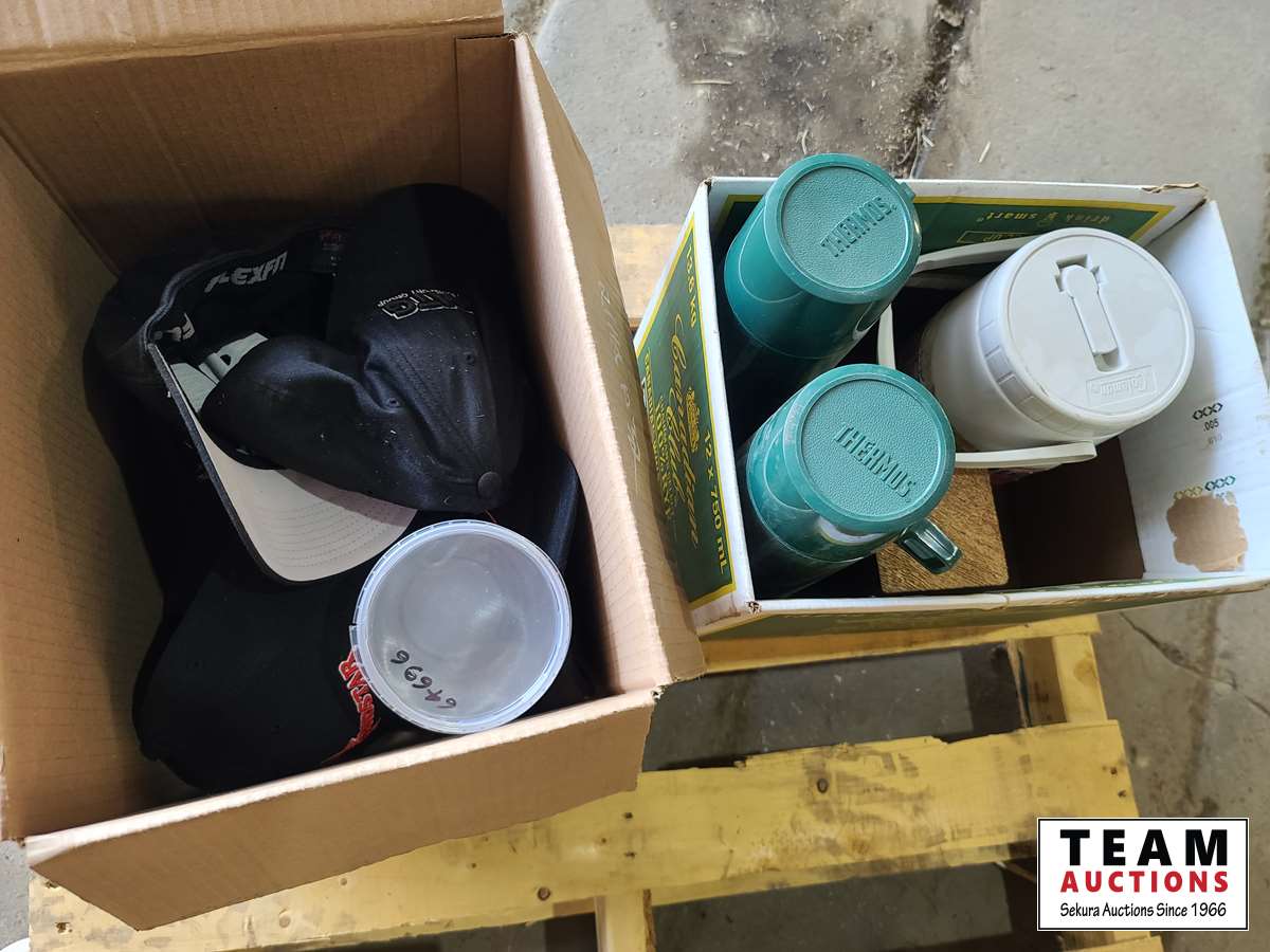 1611 Box of Hats, (2) Thermos and (1) Water Jug