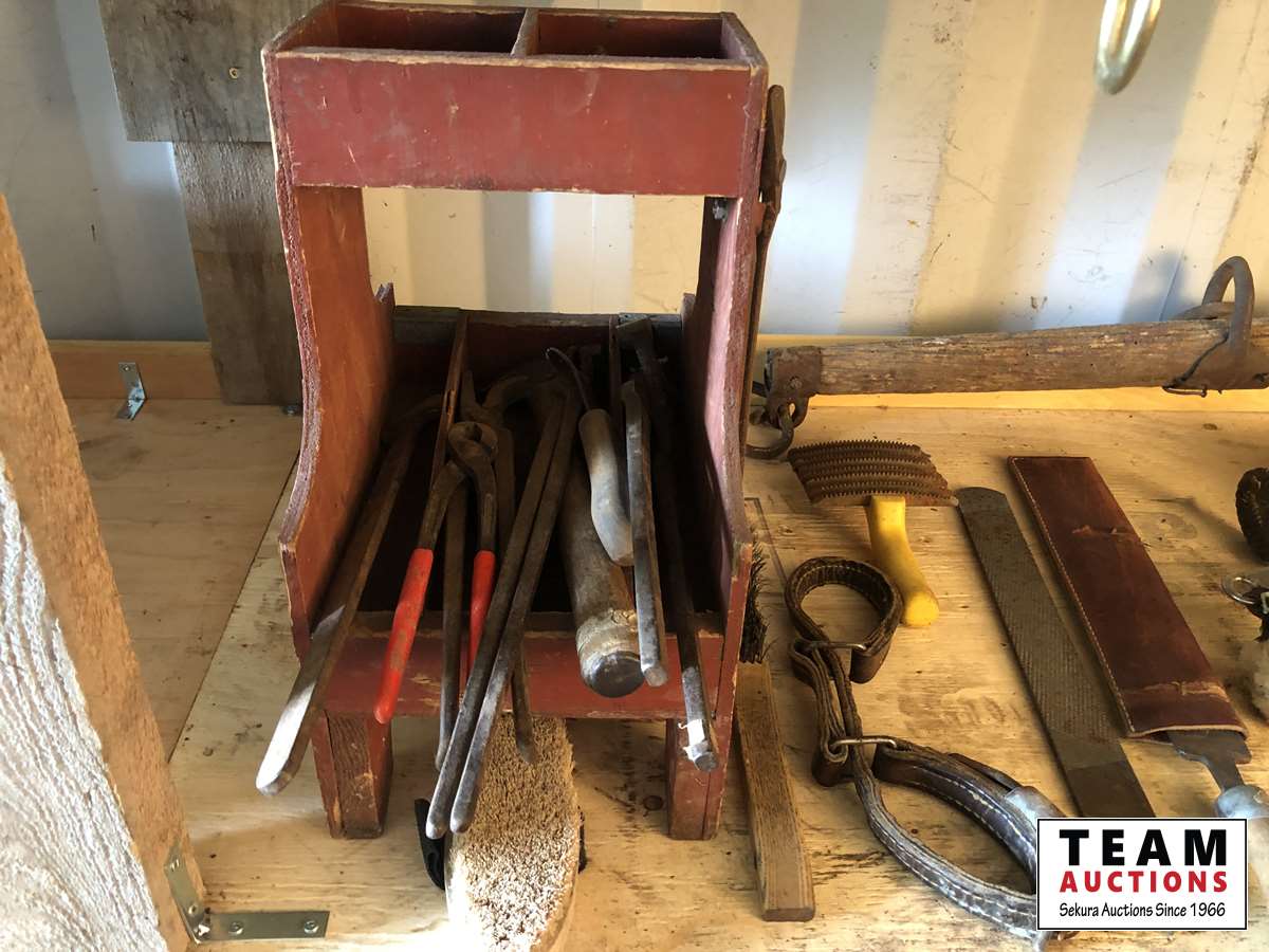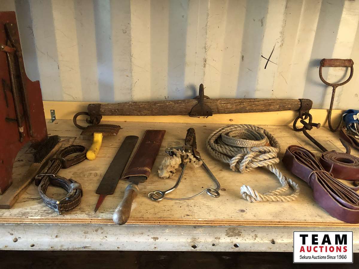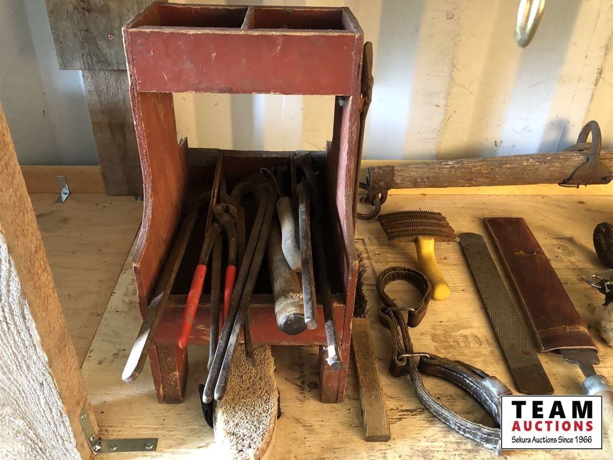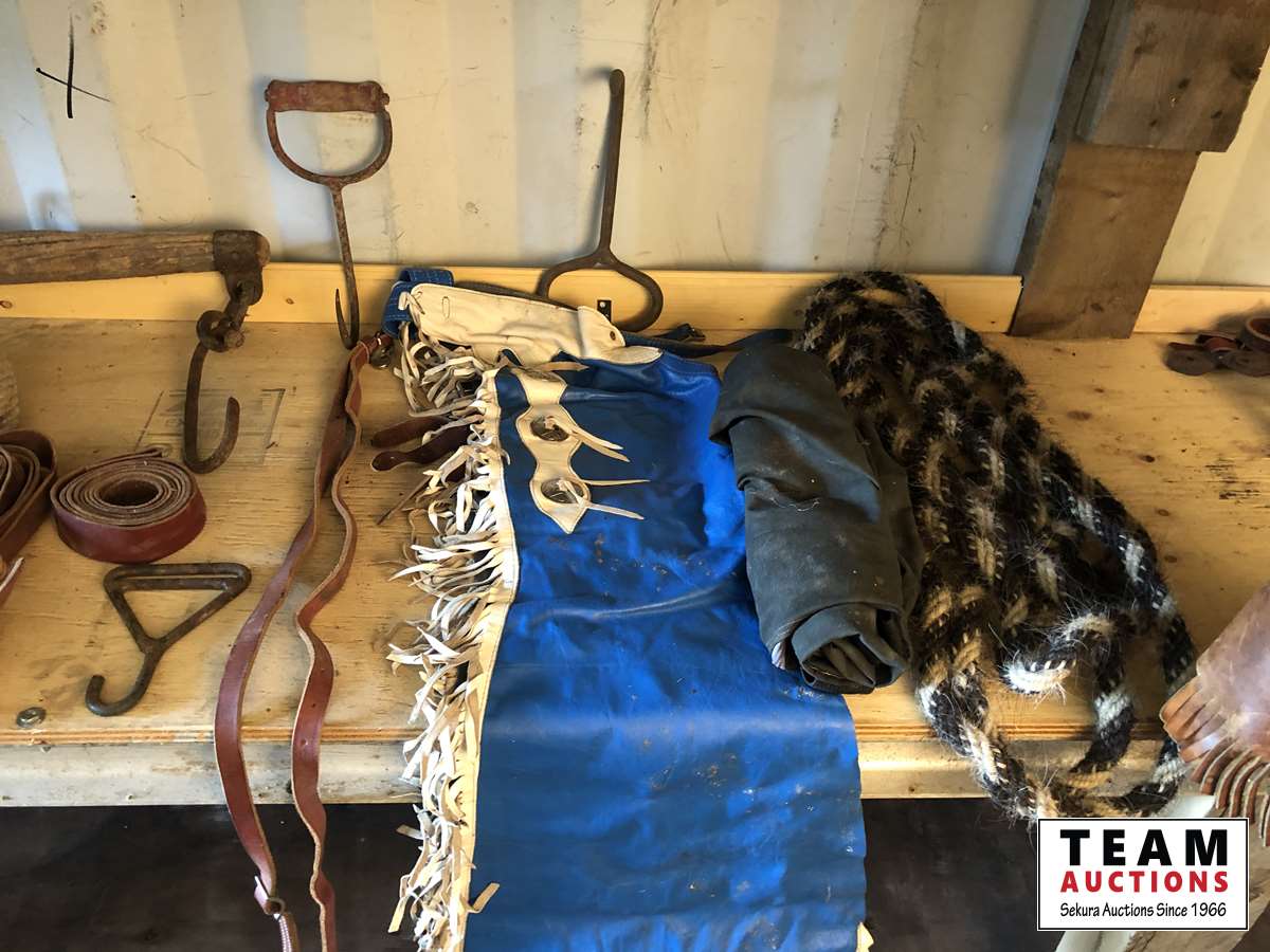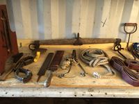 Rasps, bit, rope and leather straps, (2) bale hooks, (2) sets of CHAPS33 inch single tree