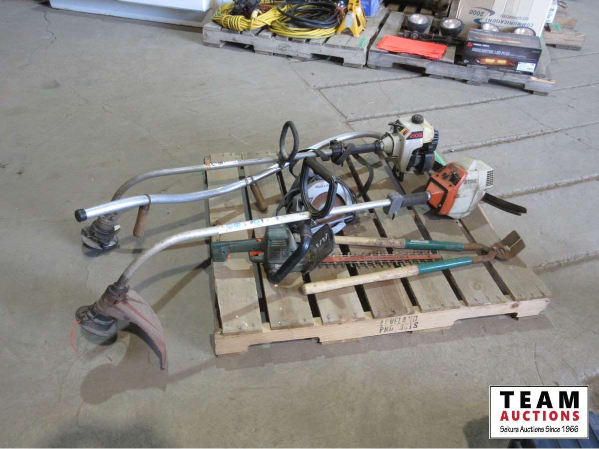 (2) trimmers, hoof clippers, circular saw, hedge trimmer, scythe