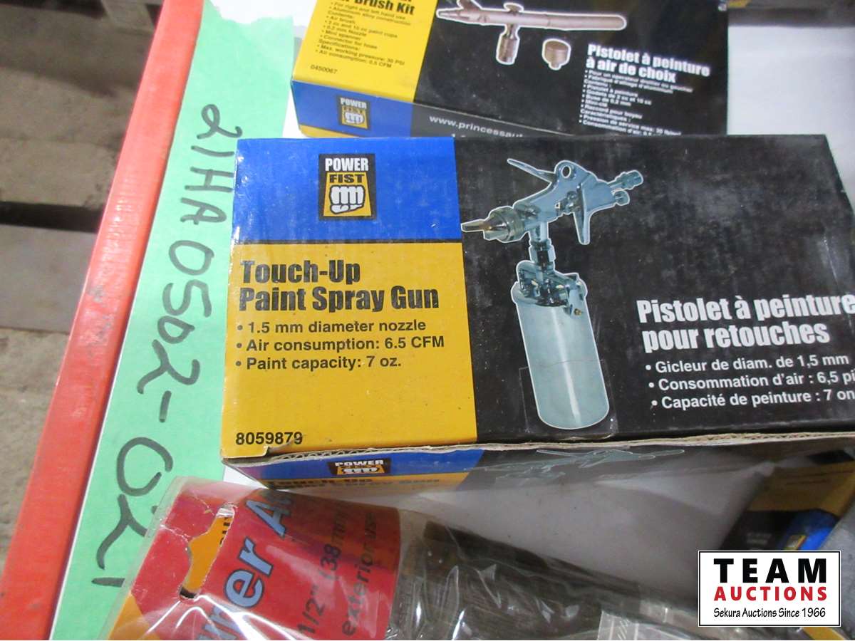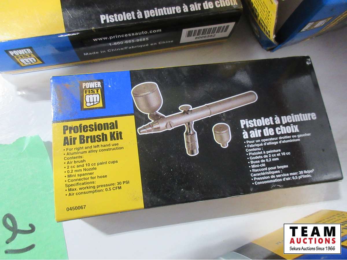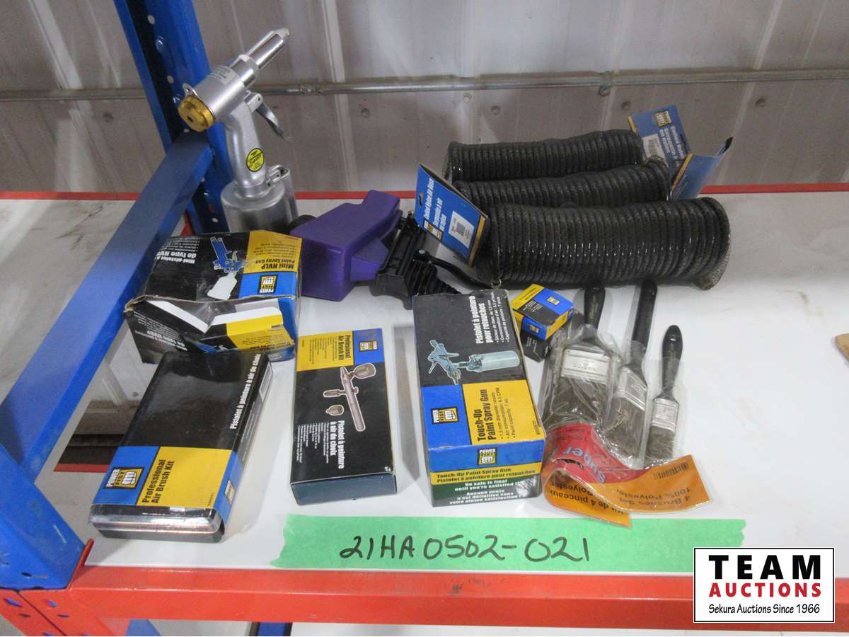 Brushes, (3) air hoses, paint sprayers, air brush kits