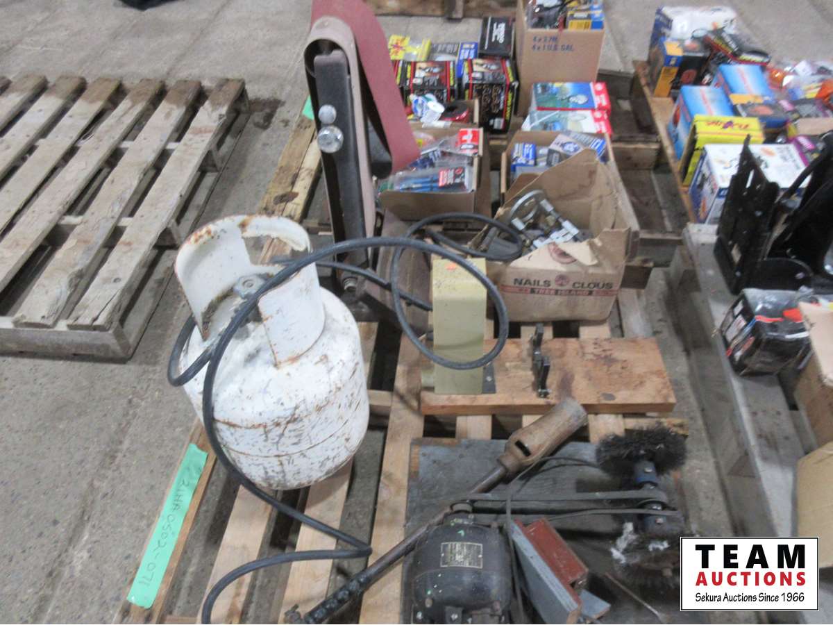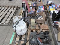 tiger torch, Shop Built wire buffing wheel, (2) sanders, box of miscellaneous