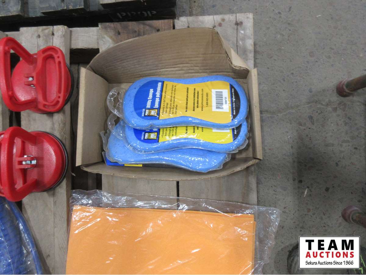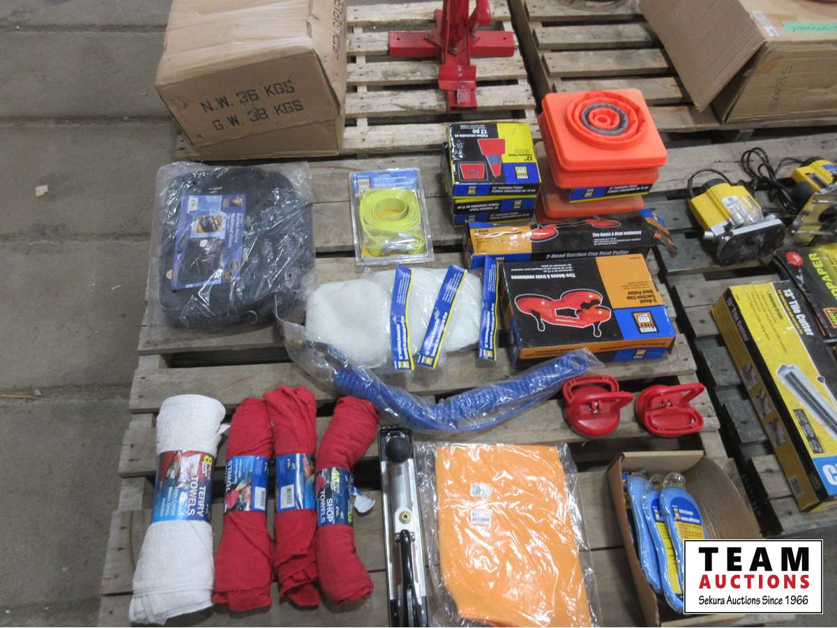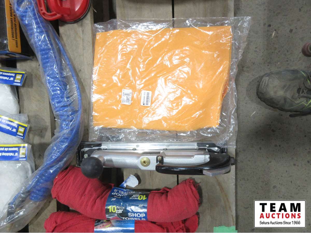 foldable pylons, 2 head suction cup dent puller, 3 head suction cup dent puller, (2) suction cups, utility sponges, orange chamois, air hose 15 ft tow strap, business carrying Case and more