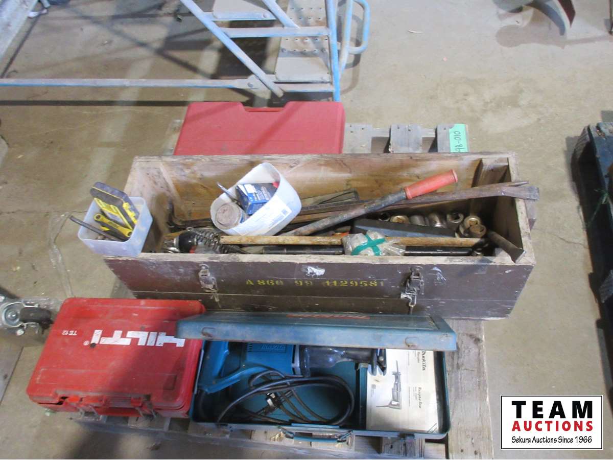 Impact socket set, Makita sawzall, Hilti TE12 drill, miscellaneous tools