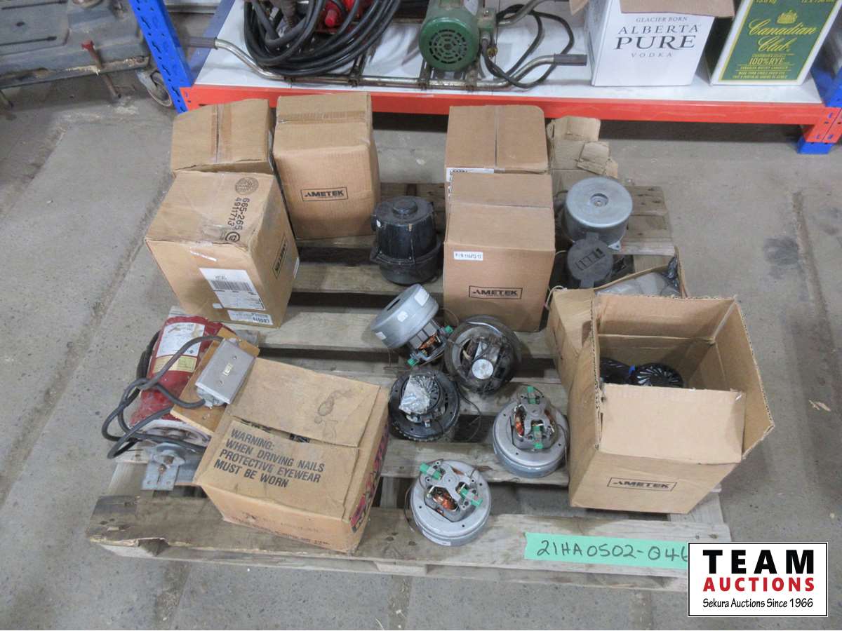 1180 Pallet of Vacuum Motors, Box of 2.5 Inch Ardox Nails, 1.5 HP Electric Motor