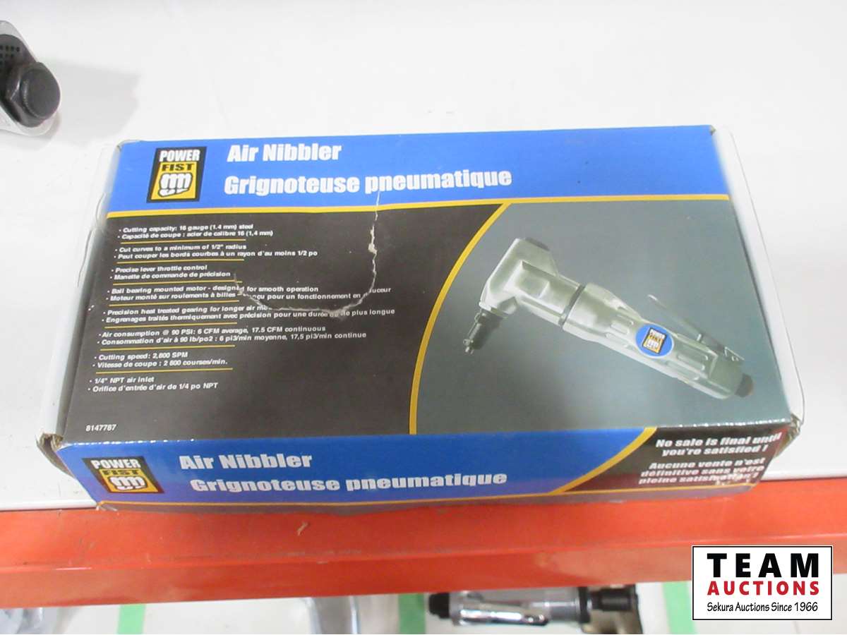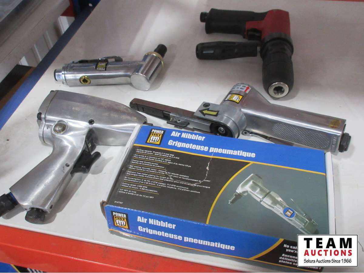 1659 Powerfist Air Nibbler, 3/8 Air Impact, Air Sander, 45 Degree Die Grinder, Air Drill (Unused)