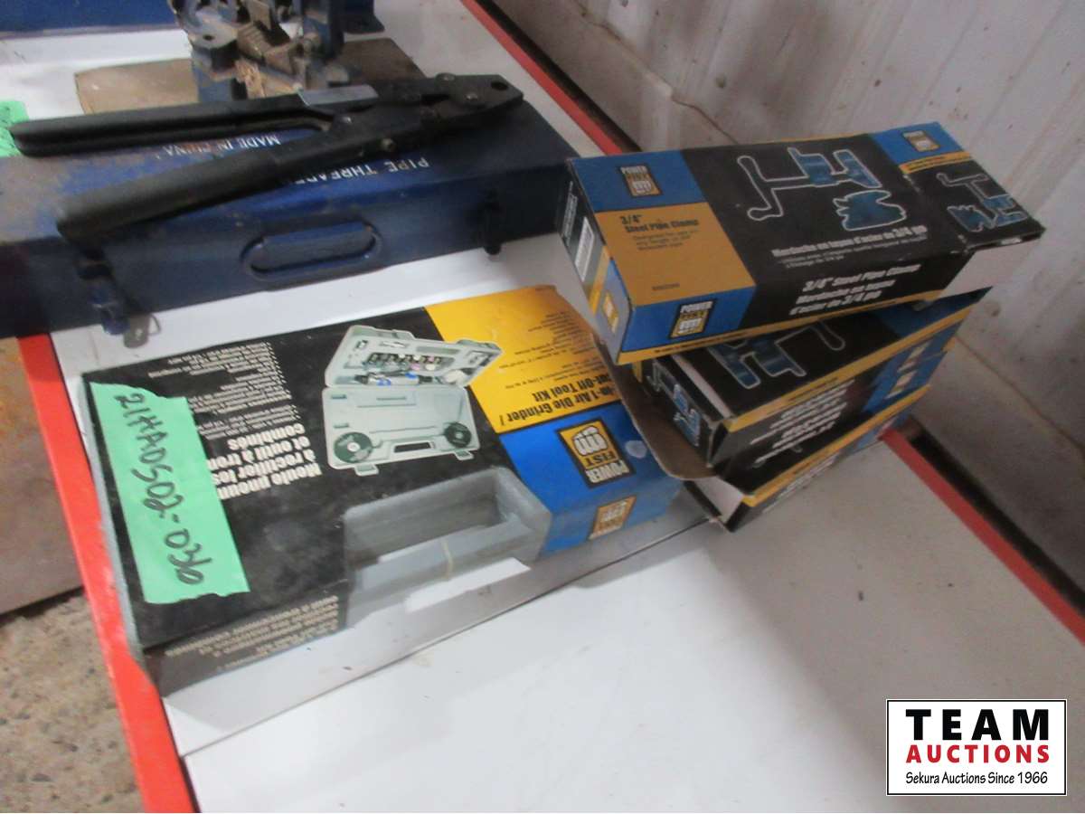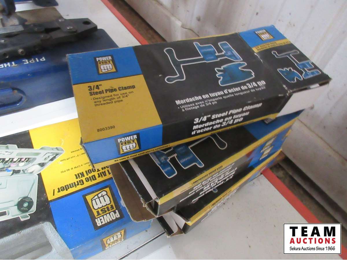 1632 Powerfist Die Ginder & (4) 3/4 Inch Pipe Clamps (Unused)