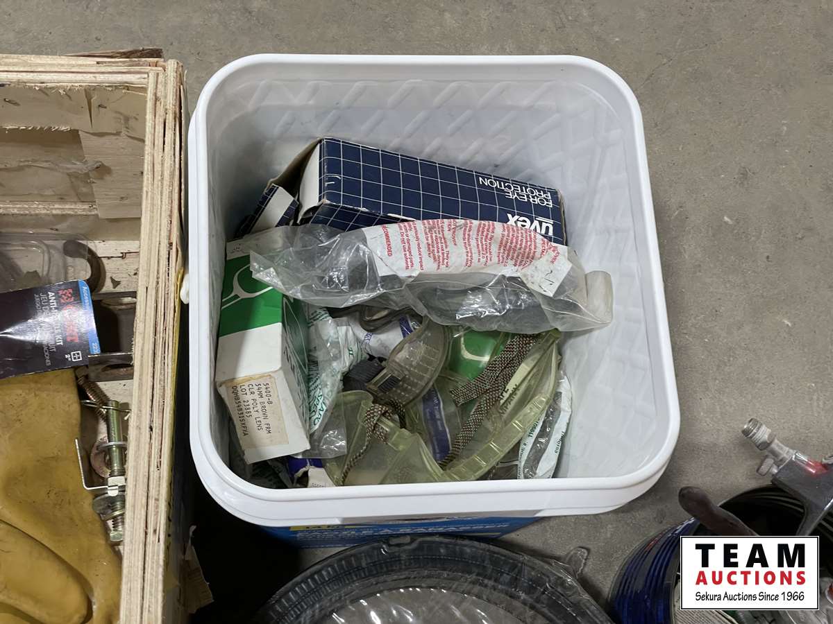 Safety glasses, air filter, metal brackets, etc.