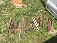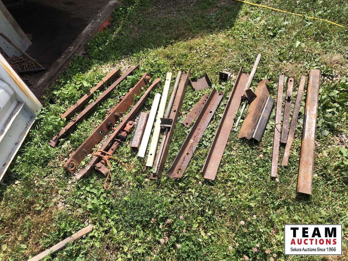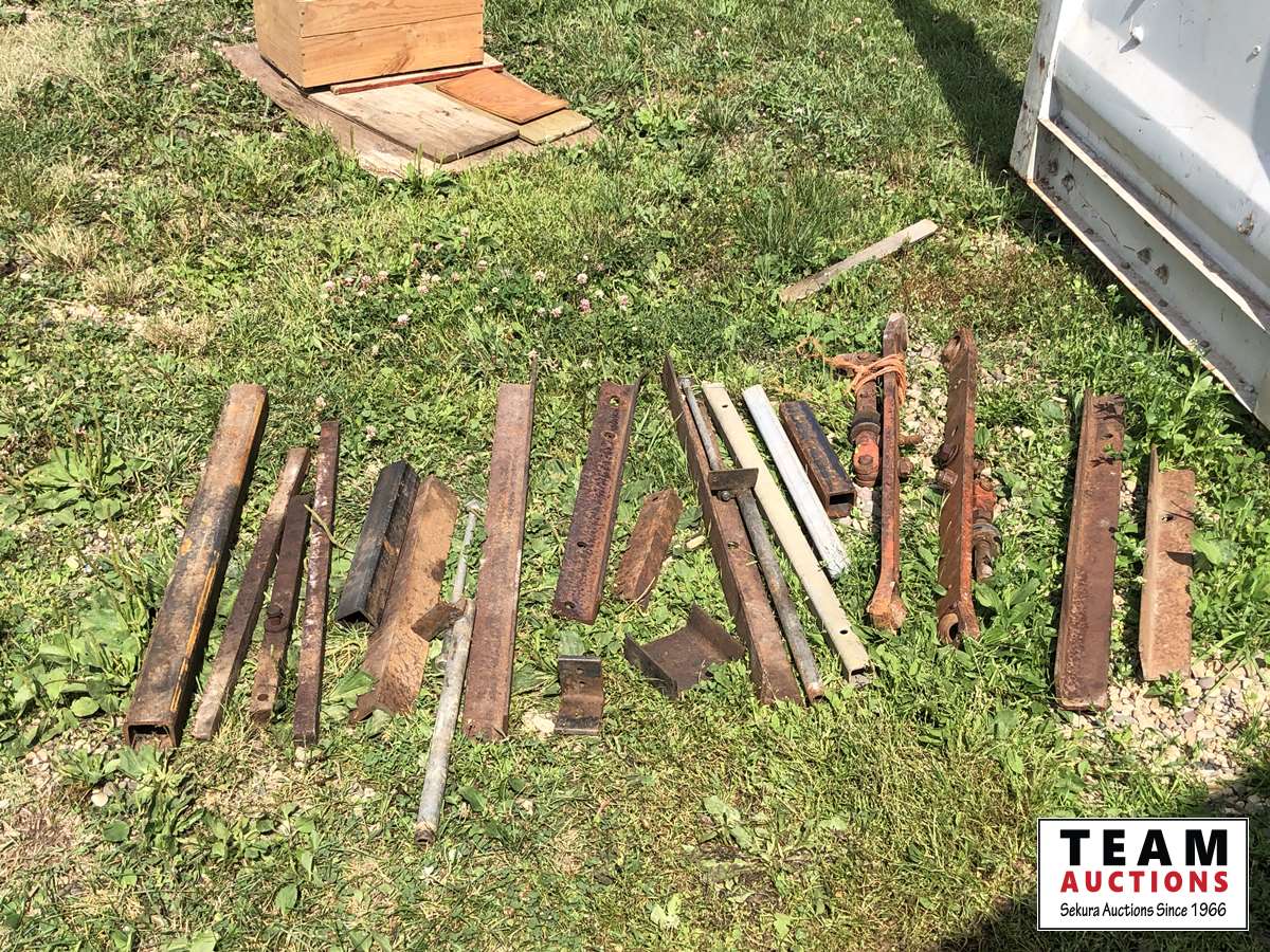 1/2 inch & 1/4 inch partial steel plates, (2) aluminum flat pieces, miscellaneous steel angle iron, square tubing, square 1 inch bar, (2) Nuffield hitch arms