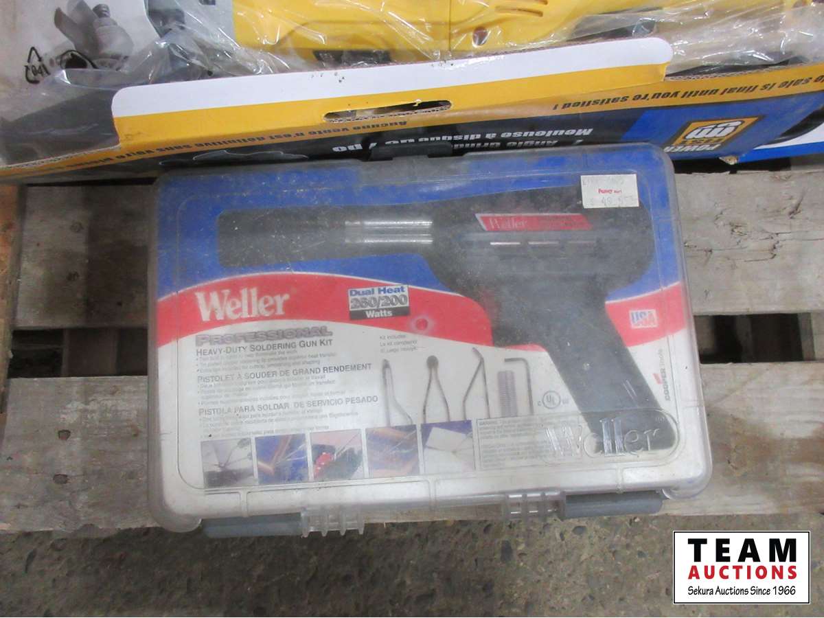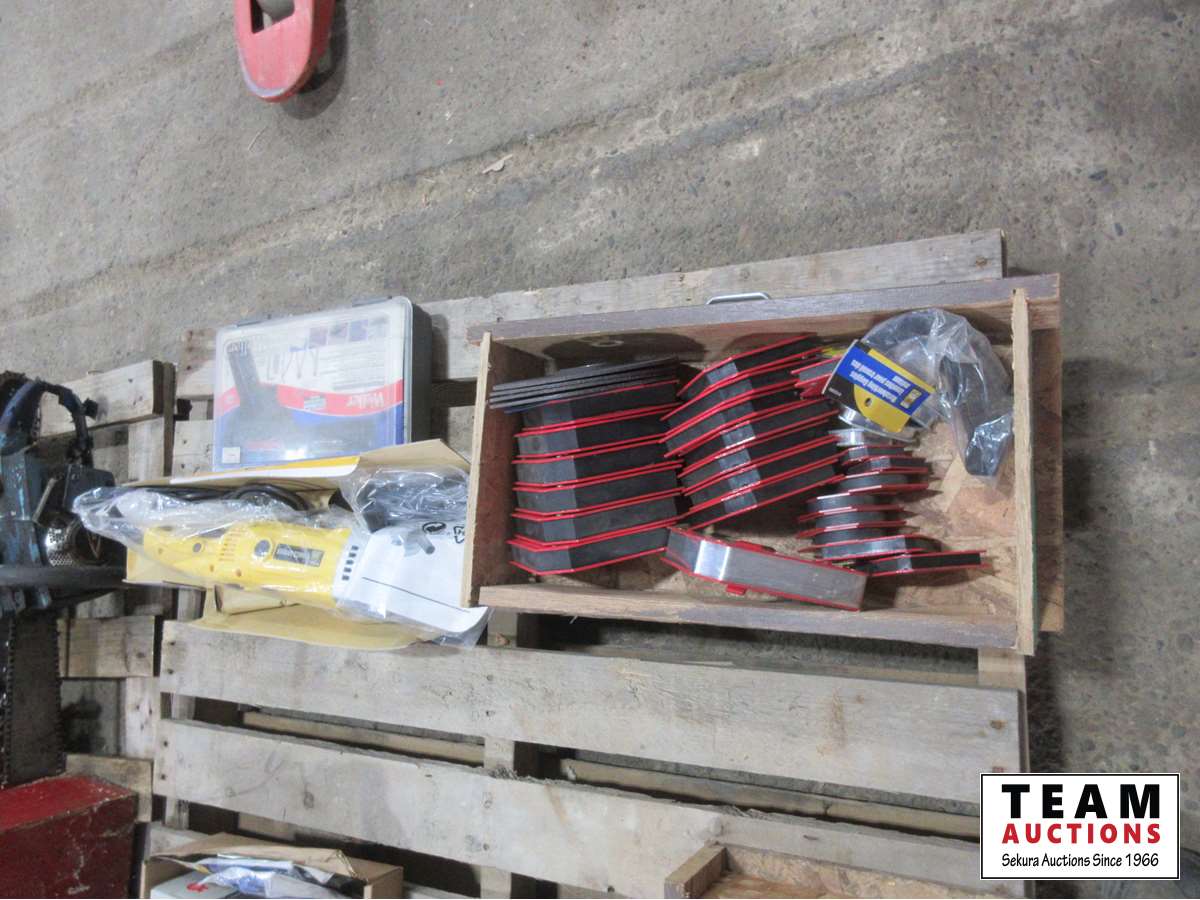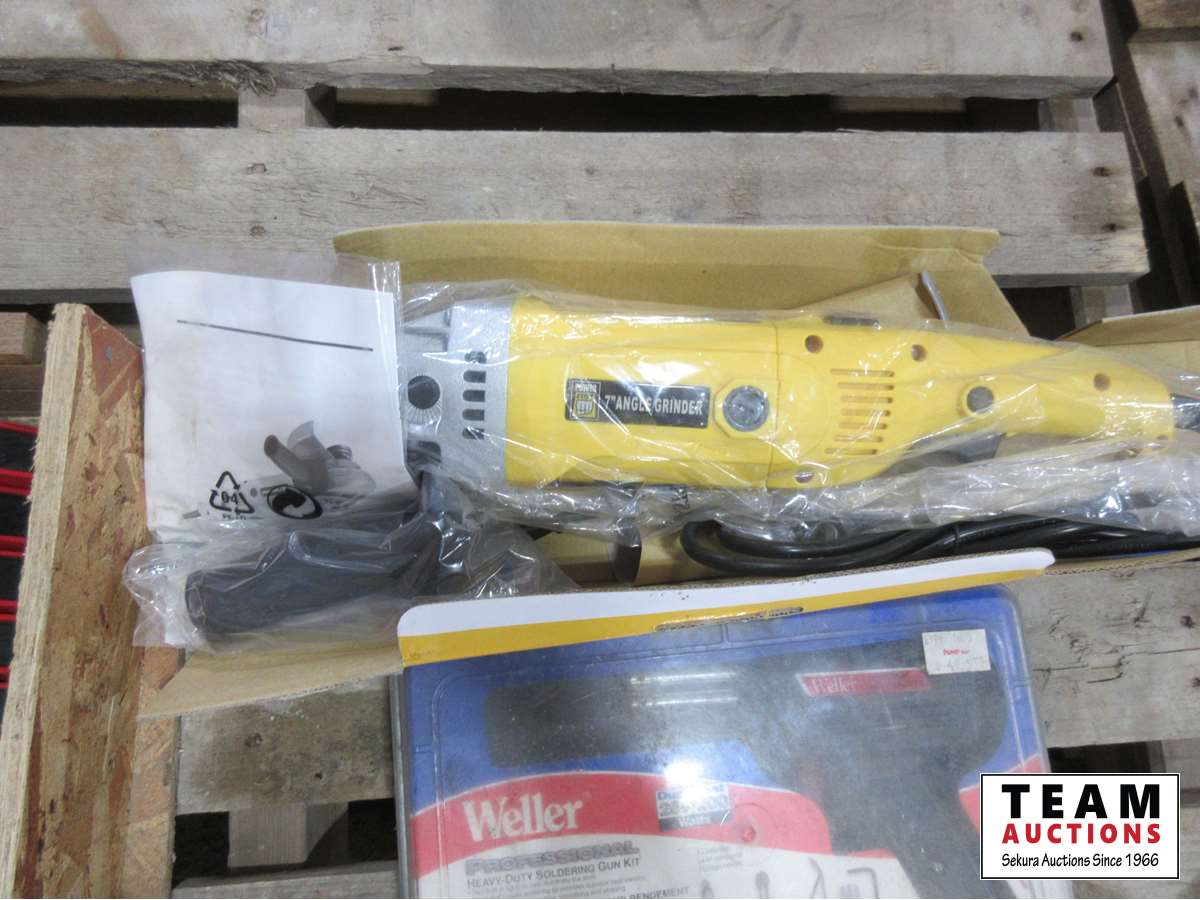 Welding corner brackets, 7 inch grinder discs, metal working goggles, new Powerfist 7 inch angle grinder, Weller soldering kit