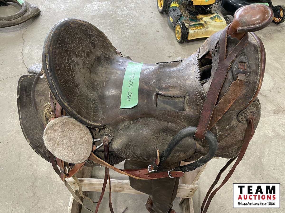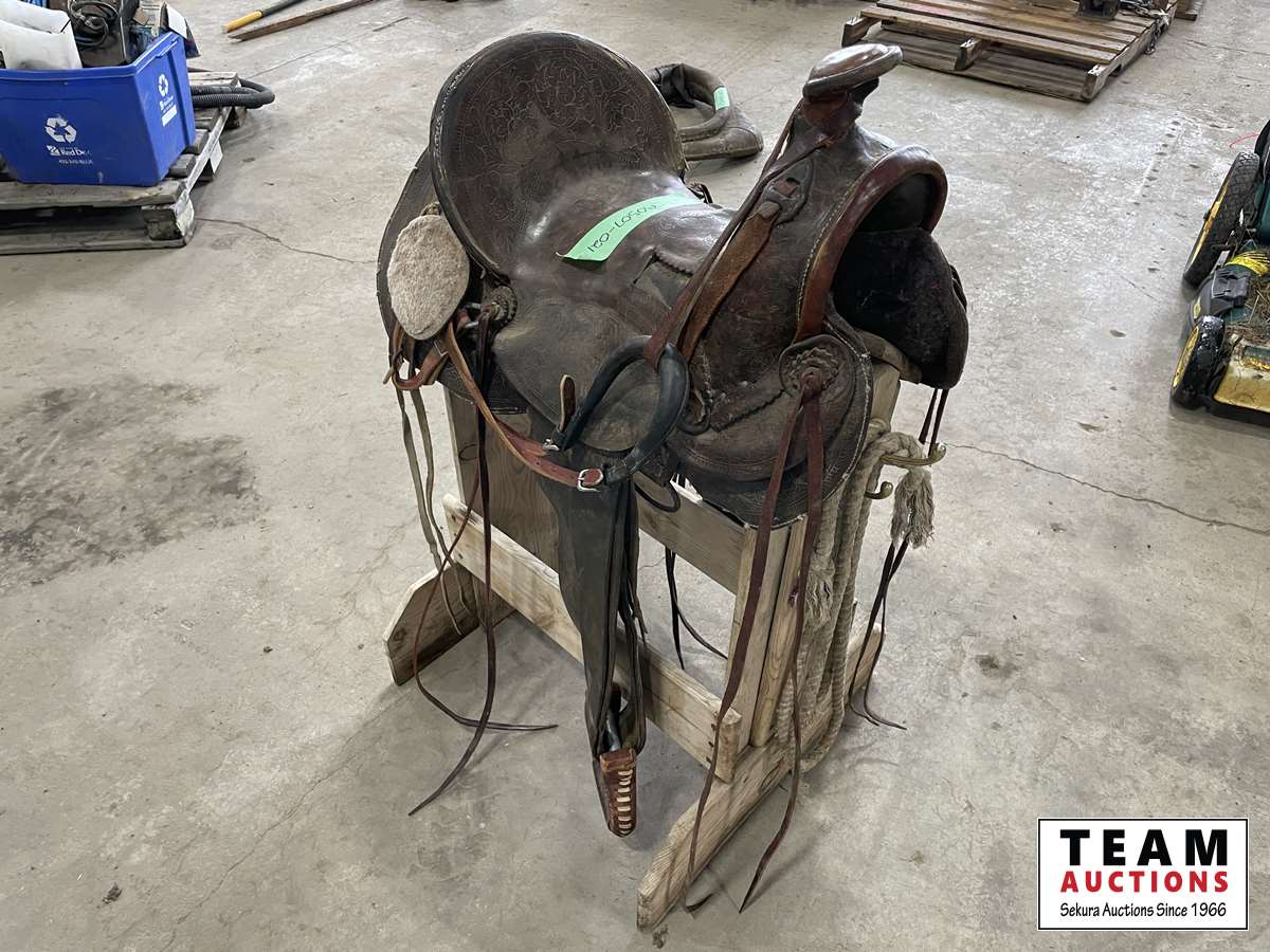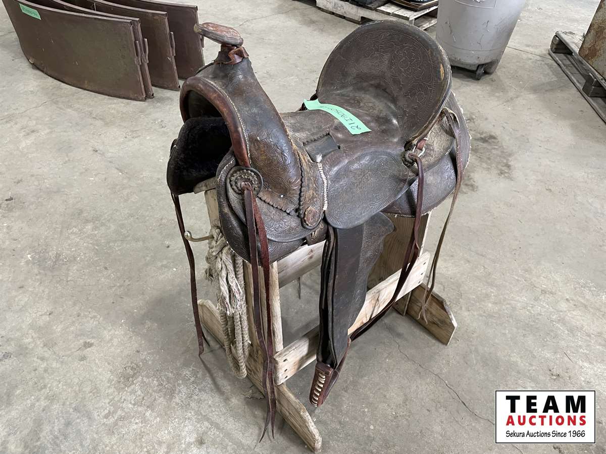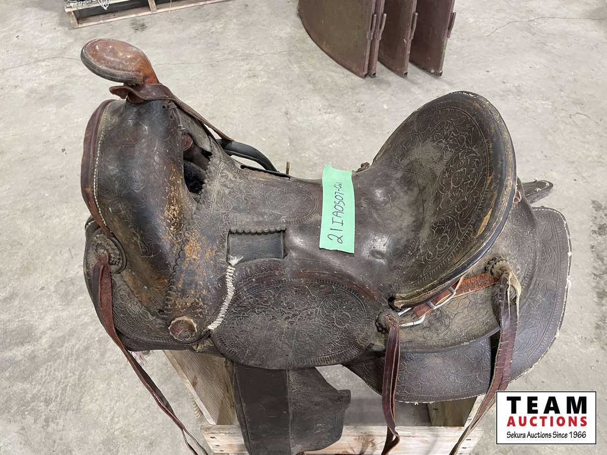 1607 15 Inch Western Saddle with Stand & Branding Irons