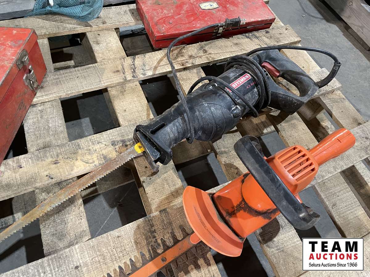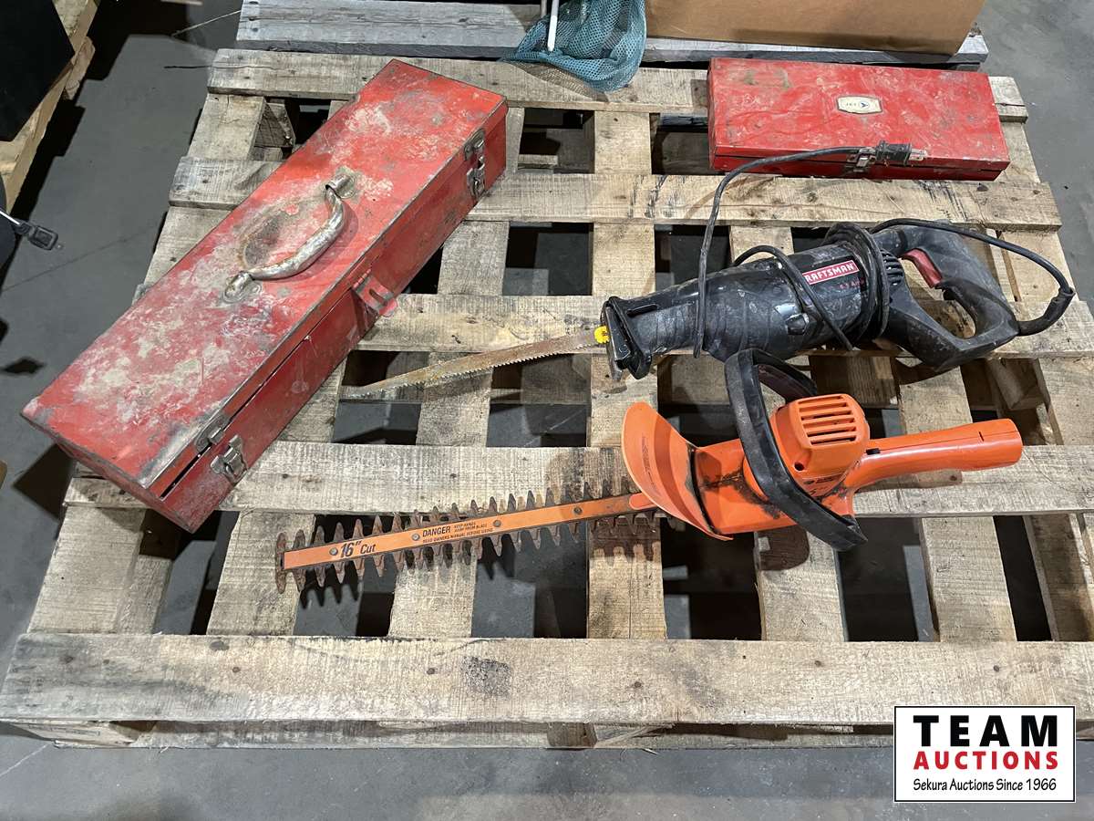 1341 (2) Tool Boxes with Assorted Tools, Sawzall, and Hedge Trimmer