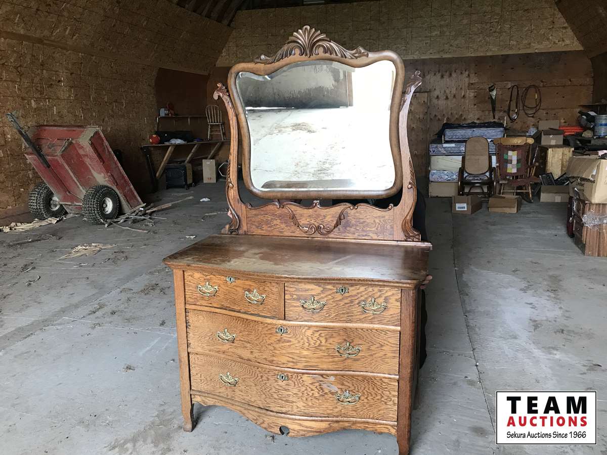 2070 Antique 4 Drawer Dresser with Mirror