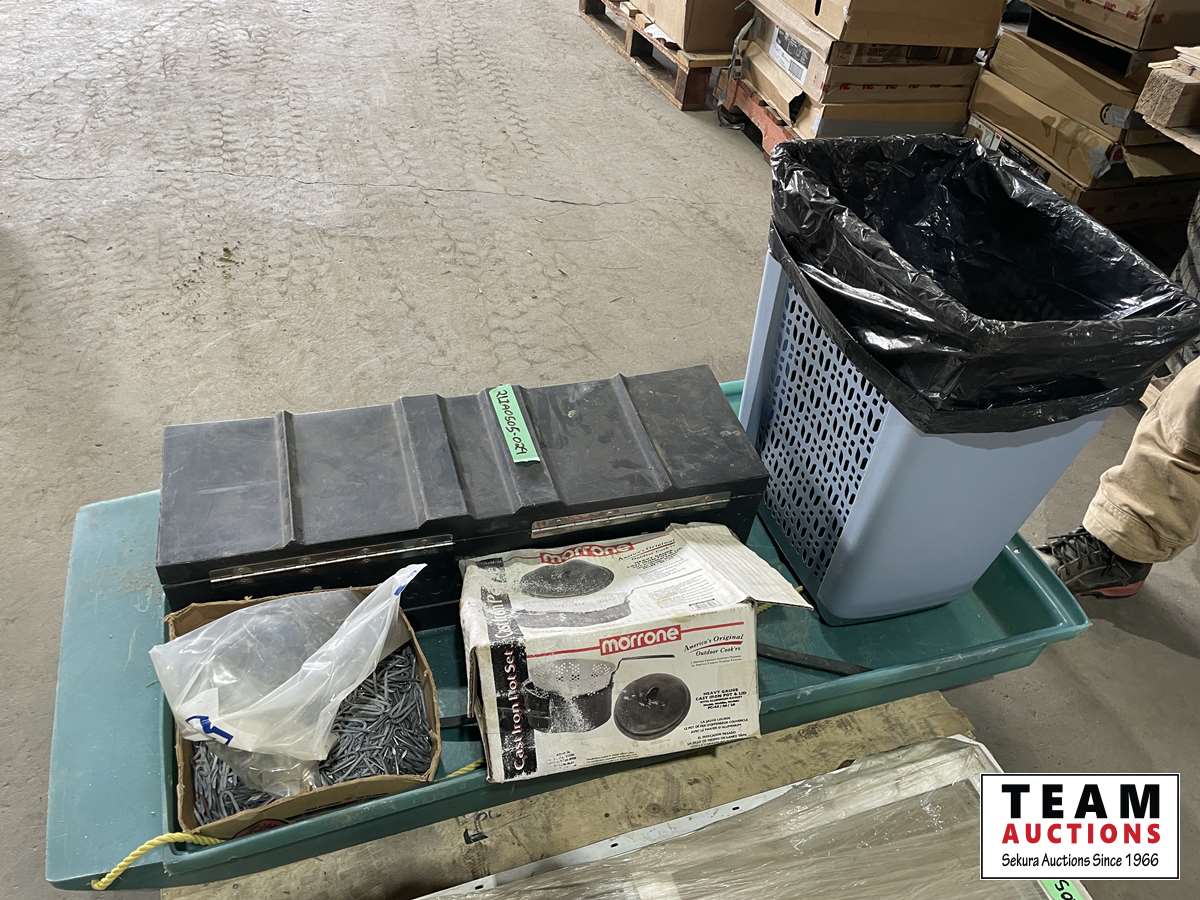 1382 Calf Sleigh, Quad Box, Fencing Staples, Cast Iron Deep Frier