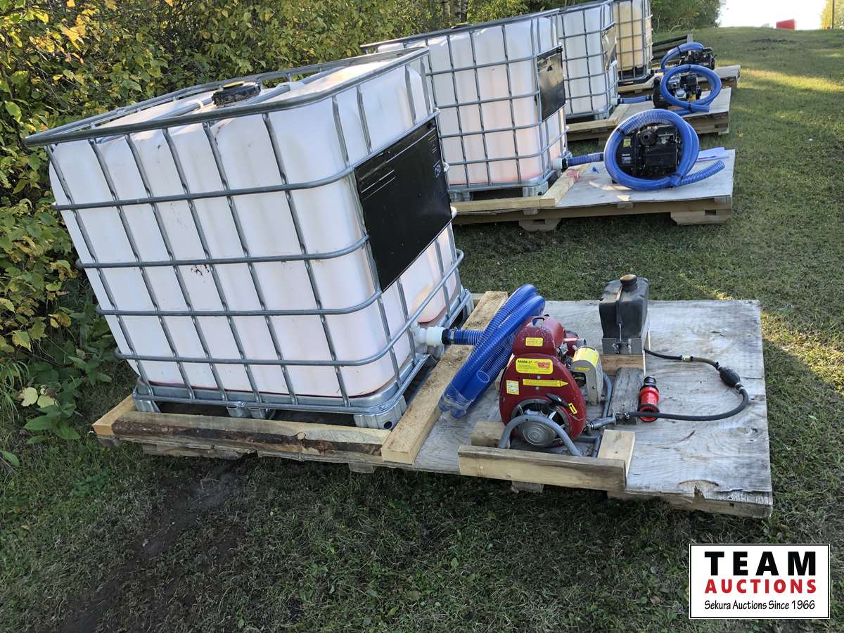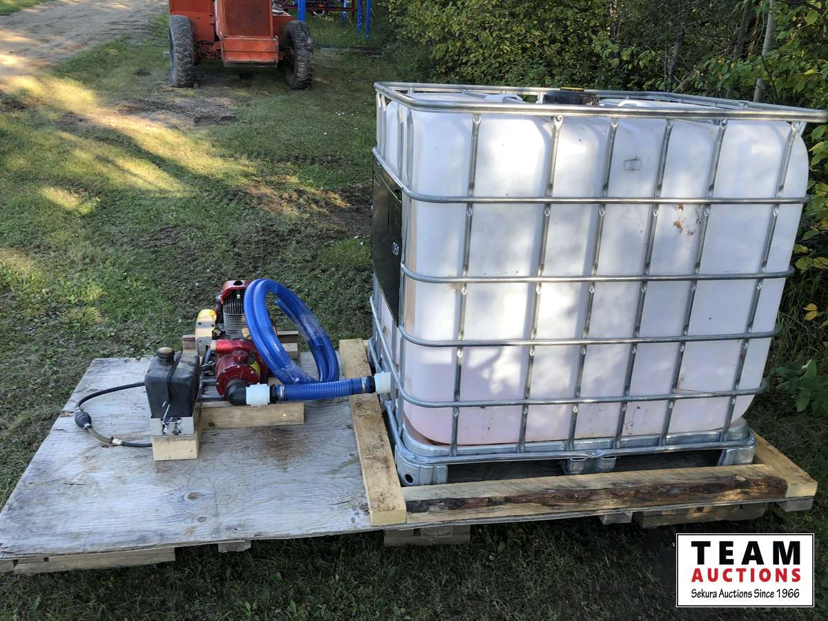 Mark 3 engine and pump, 4 stage high pressure pump, 2 inch discharge, 1000 L tote, c/w hose