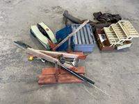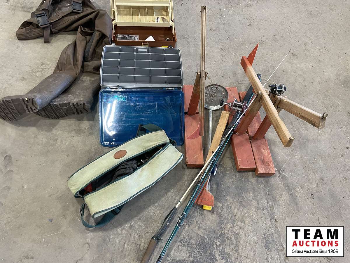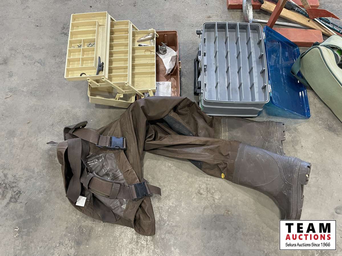 1702 Fishing Tackle Boxes, Rods, Wader Size 10
