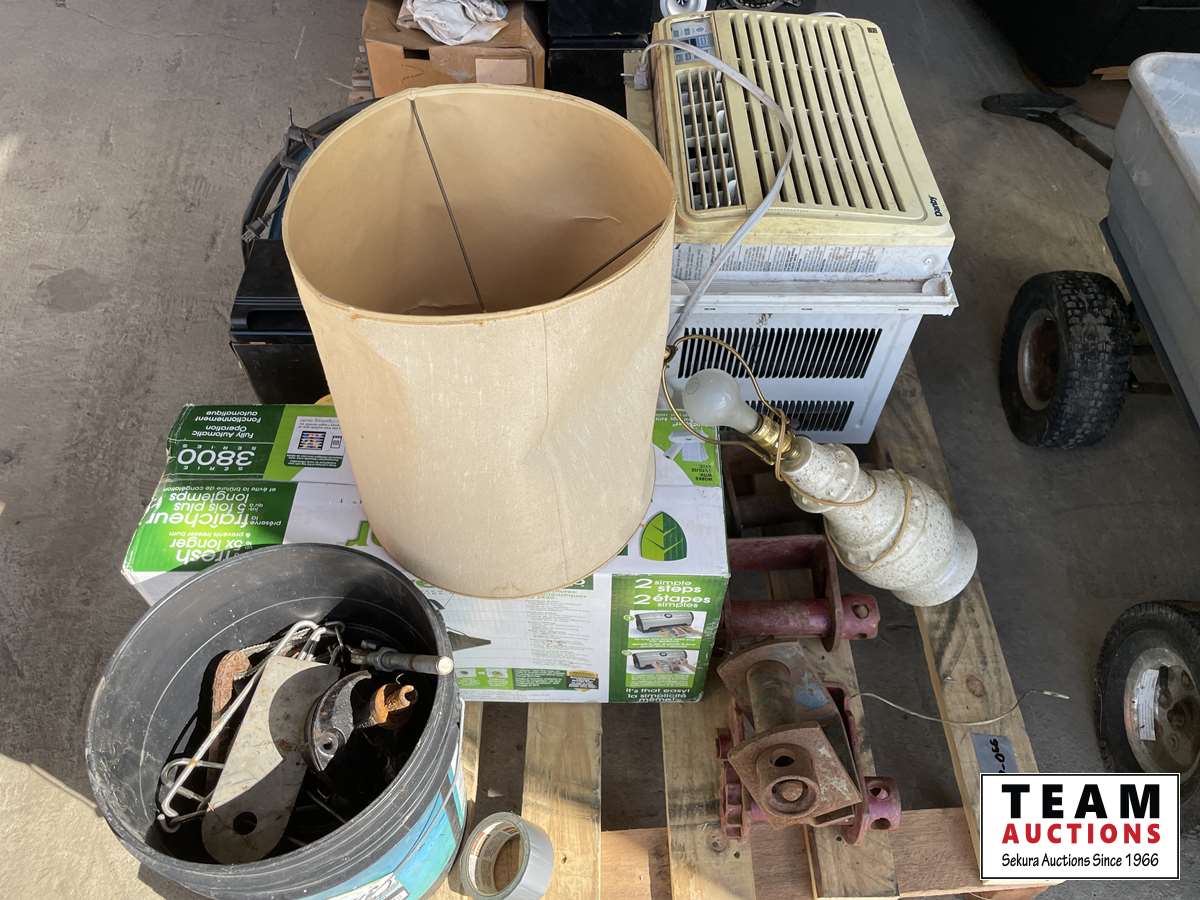 A/C unit, food saver, lamp, pale of parts