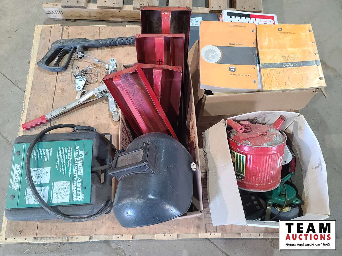 Sandblaster, miscellaneous manuals, spray wand, come along