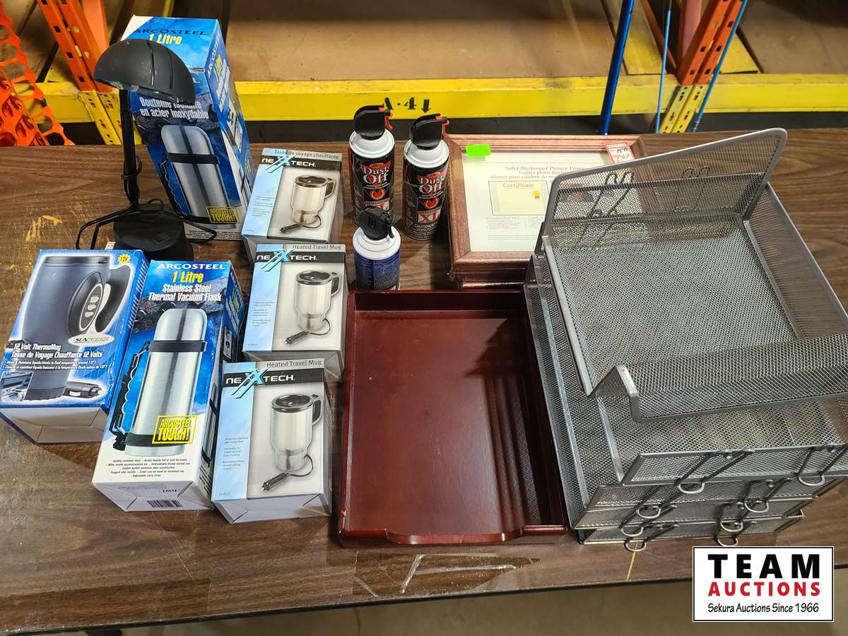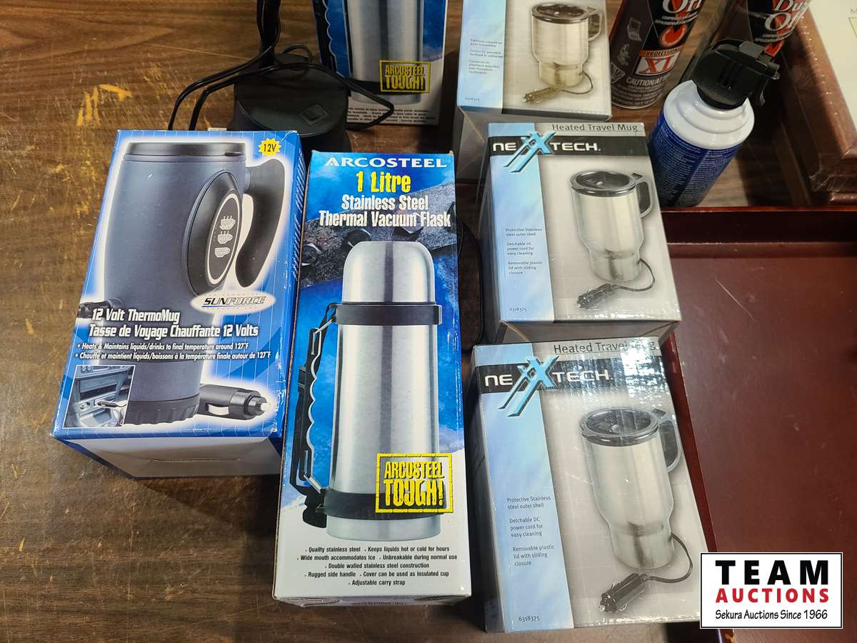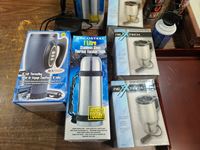 (2) thermos, (4) heated cups, desk lamp, etc.