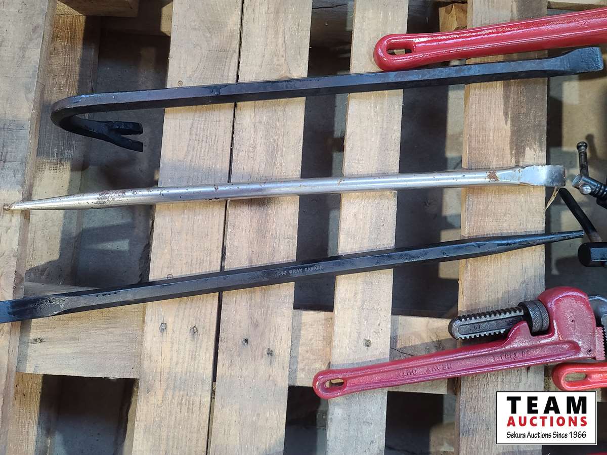 1414 Qty of Pipe Wrenches, C-Clamps and Pry Bars