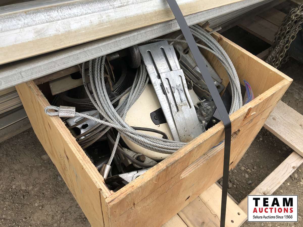 (8) panels, (3) springs, (1) motor 3/4 HP single phase 12 amp 60 hz 115V, box of hardware, rail system