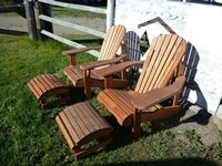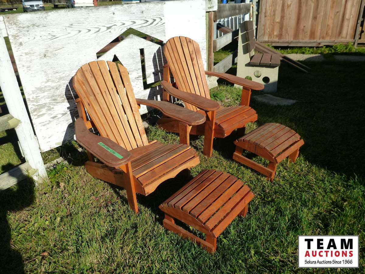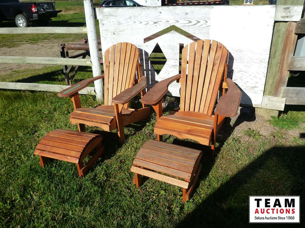 1922 (2) Wood Lawn Chairs with Foot Stools