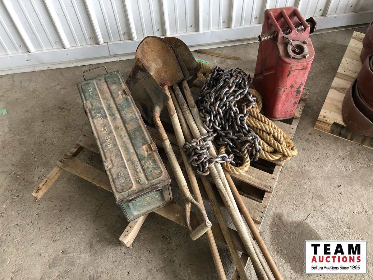 1842 (6) Shoves, Chain, Rope, Metal Gas Can, Ammo Box