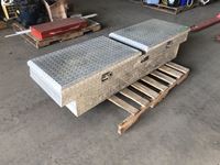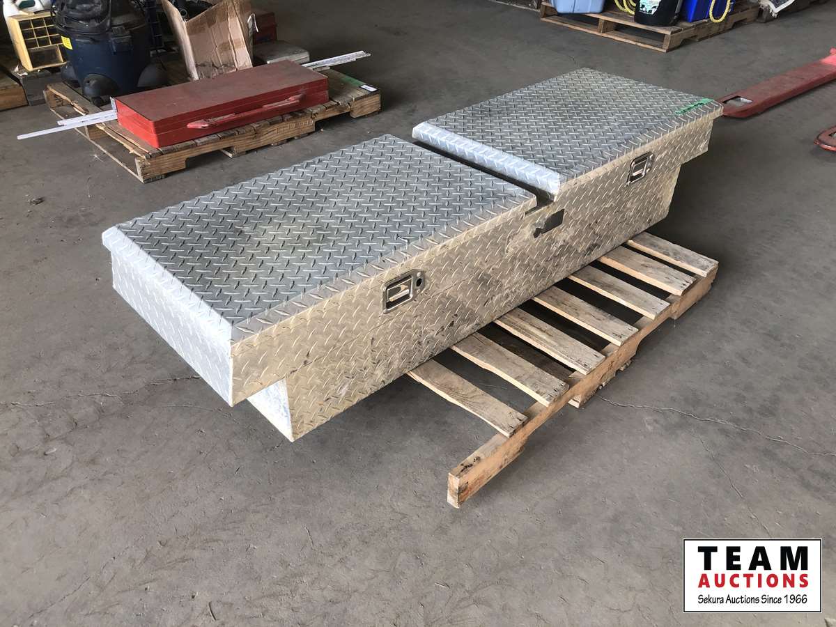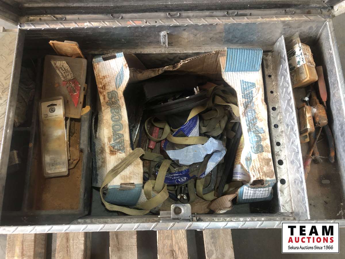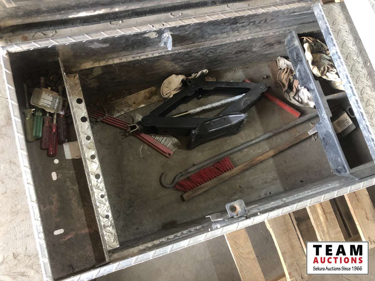 1381 Aluminum Tool Box with Tool and Miscellaneous Truck Items