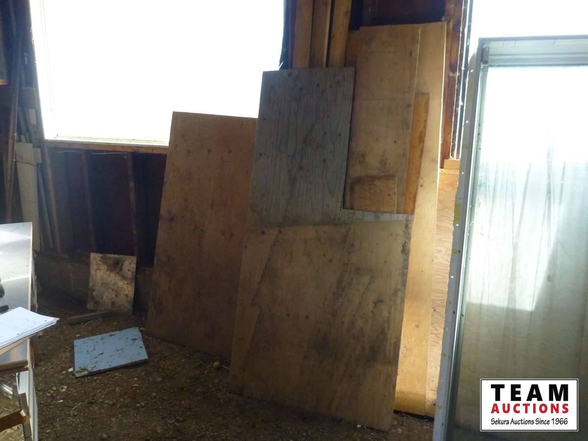 (2) 1/4 inch X 80 inch plywood, (1) 1/2 inch X 96 inch plywood, (1) 3/4 inch X 81 inch plywood, various smaller pieces, and (5) cedar wood 1 X 4 boards