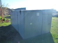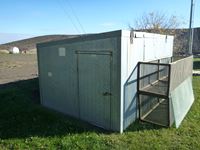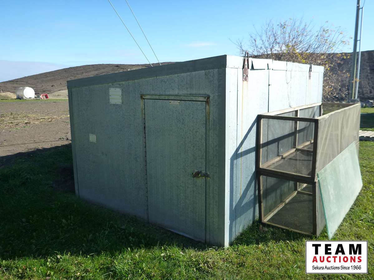 7.5 ft W X 11.5 L, 6 ft high in front and 5 ft high at back, (2) walk in doors