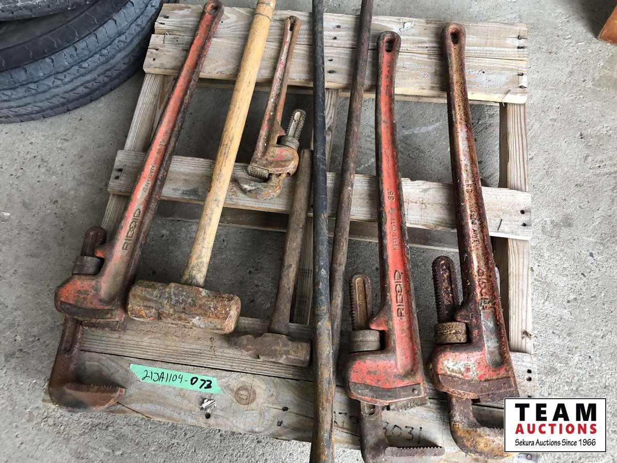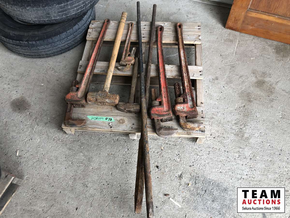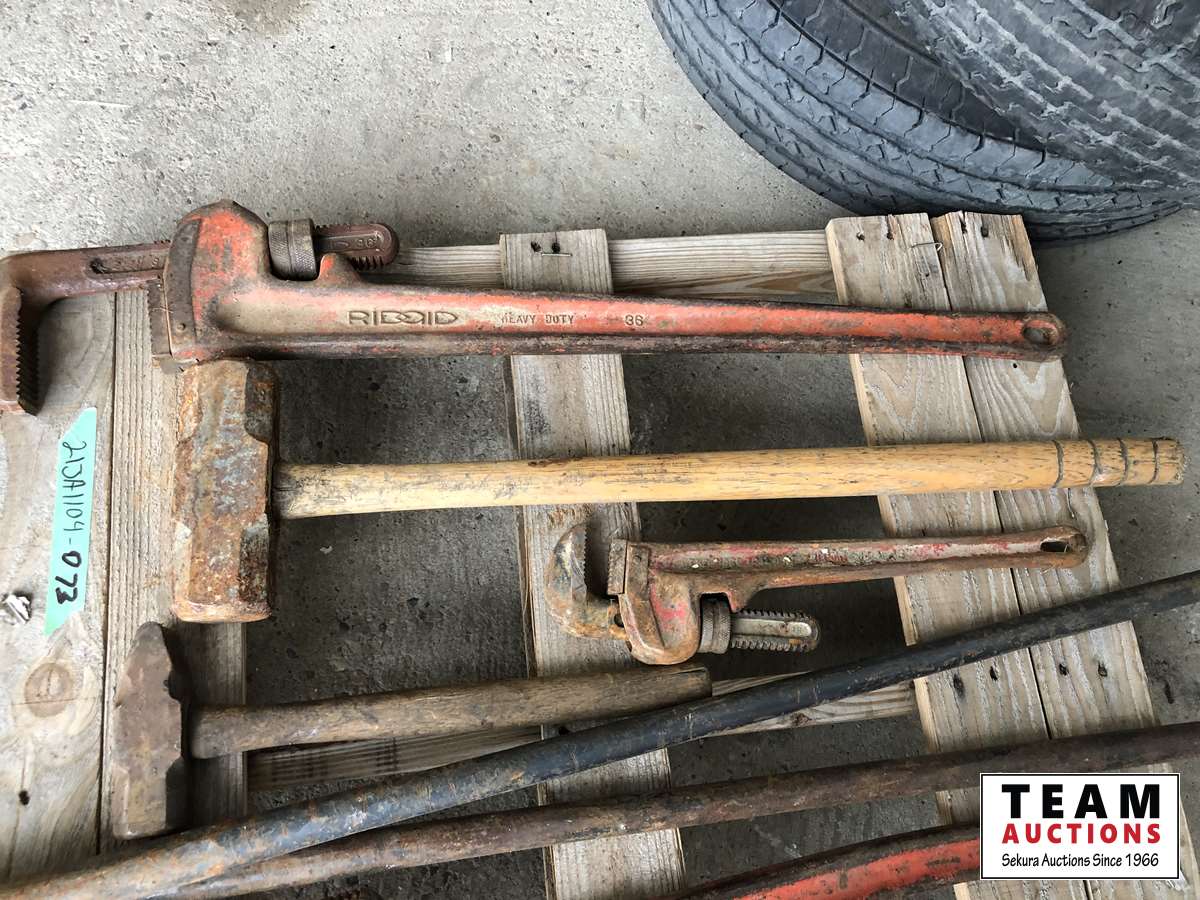 1833 Pry Bars, Pipe Wrench, Sledge Hammer