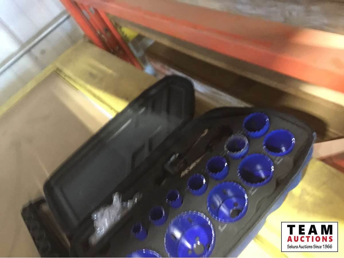 Napa Angle grinder, 15 piece impact, 12 inch sockets, Irwin 14 piece hole saw in Case