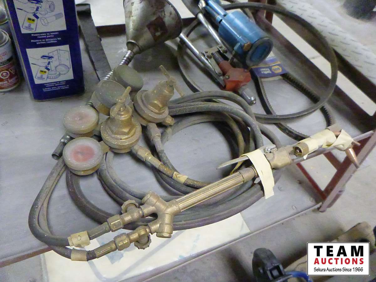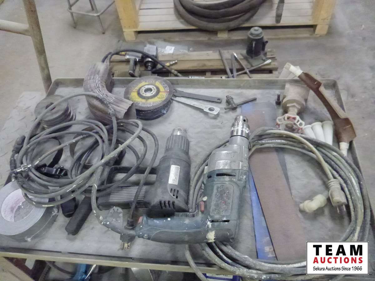 Air & manual pop riveters, drill, heat gun, small cutting torch, miscellaneous shop items