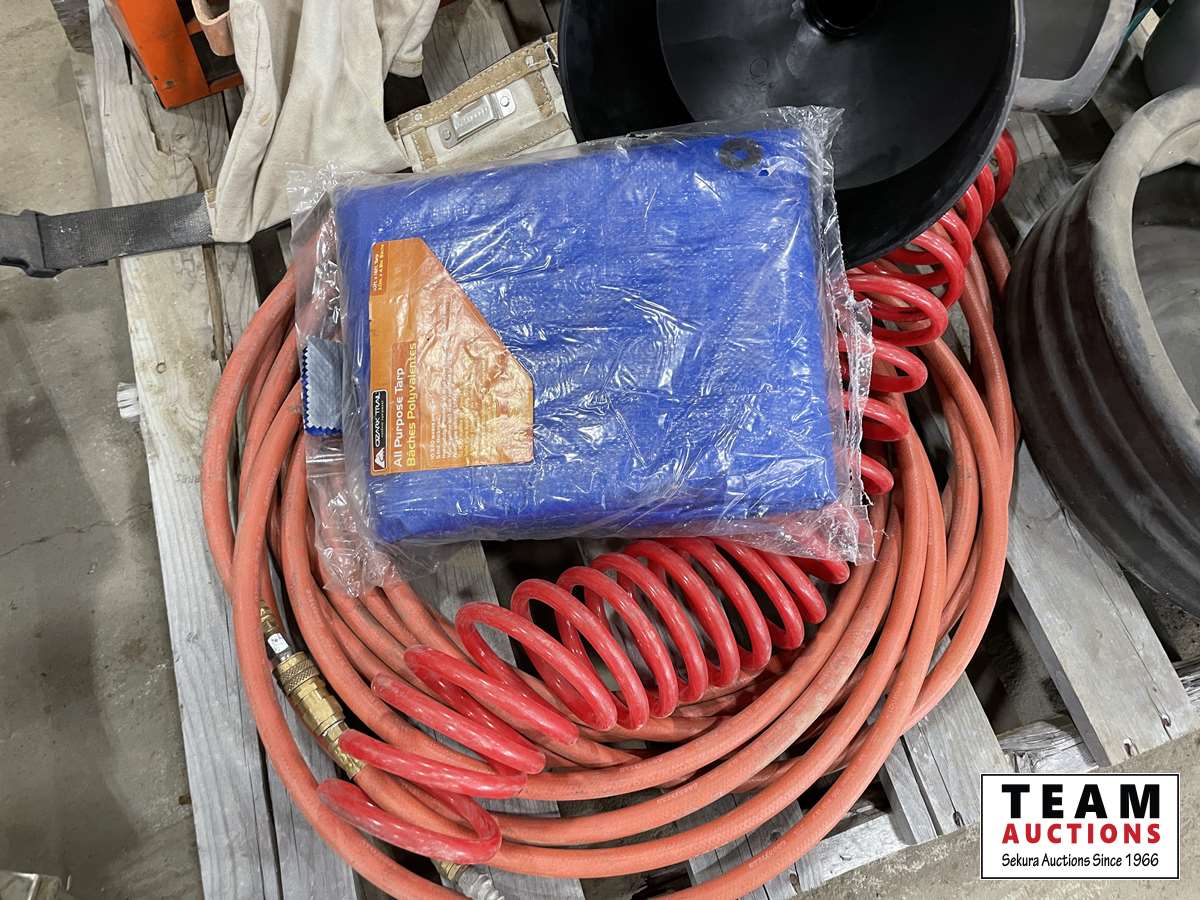 Oil pans, funnel, shop rags, (2) air hose