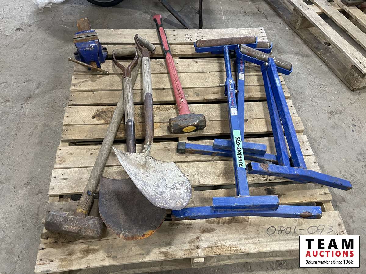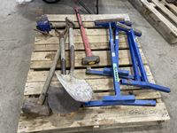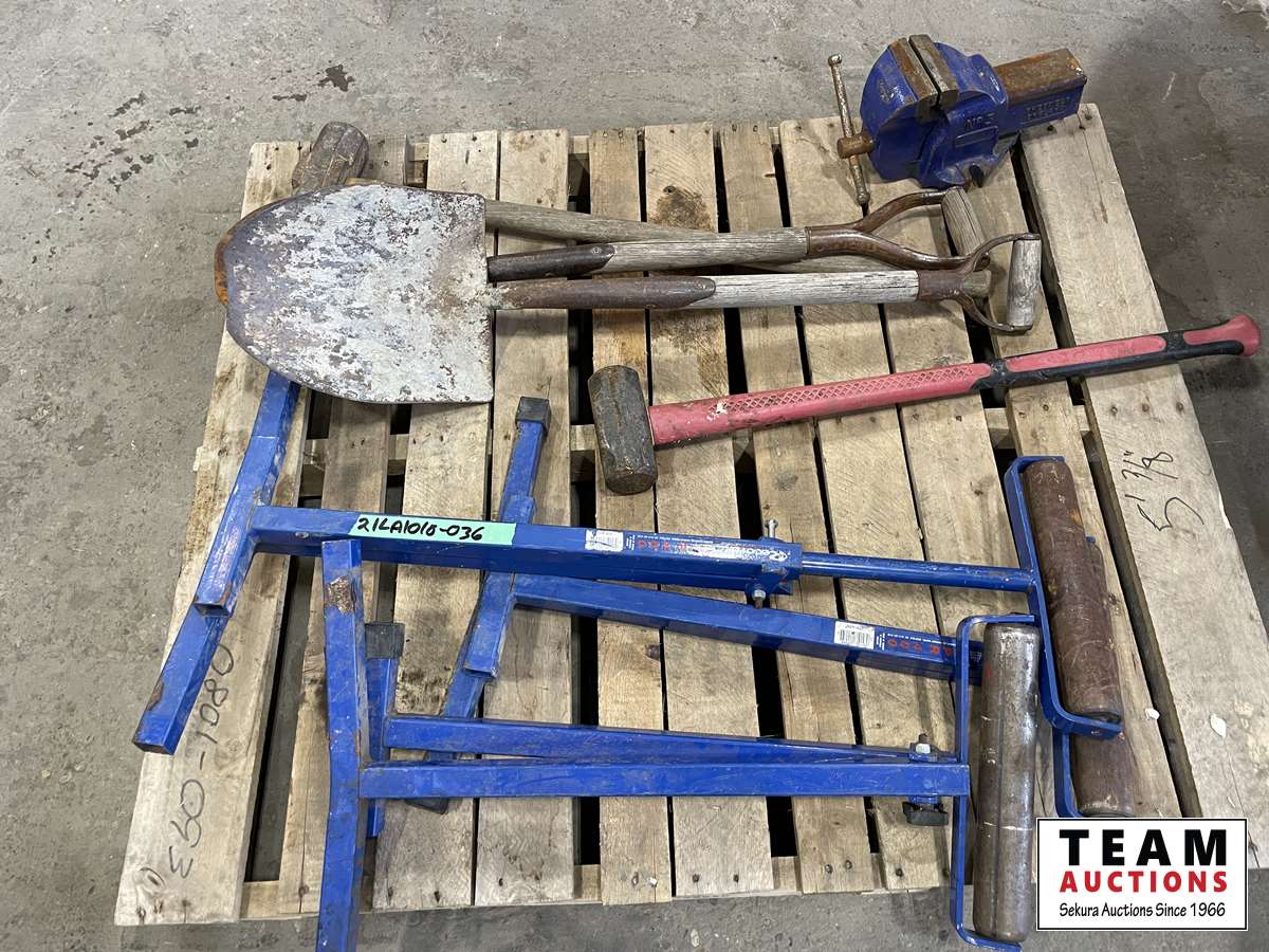 1249 (3) Roller Stand, Shoves, Sledge Hammers, Vice